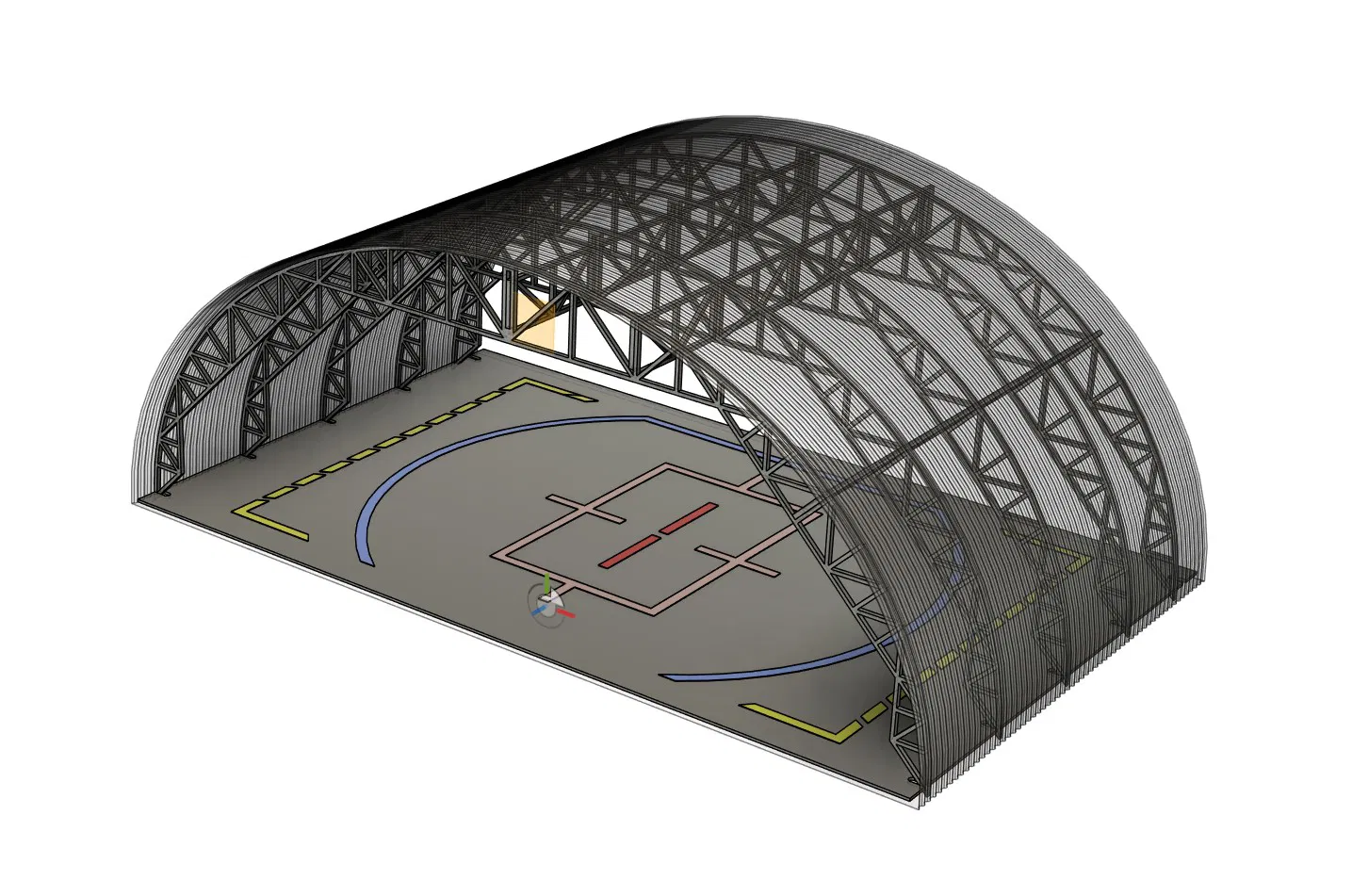 Phần mái chính của nhà chứa máy bay được thiết kế để in ở chế độ vase mode.