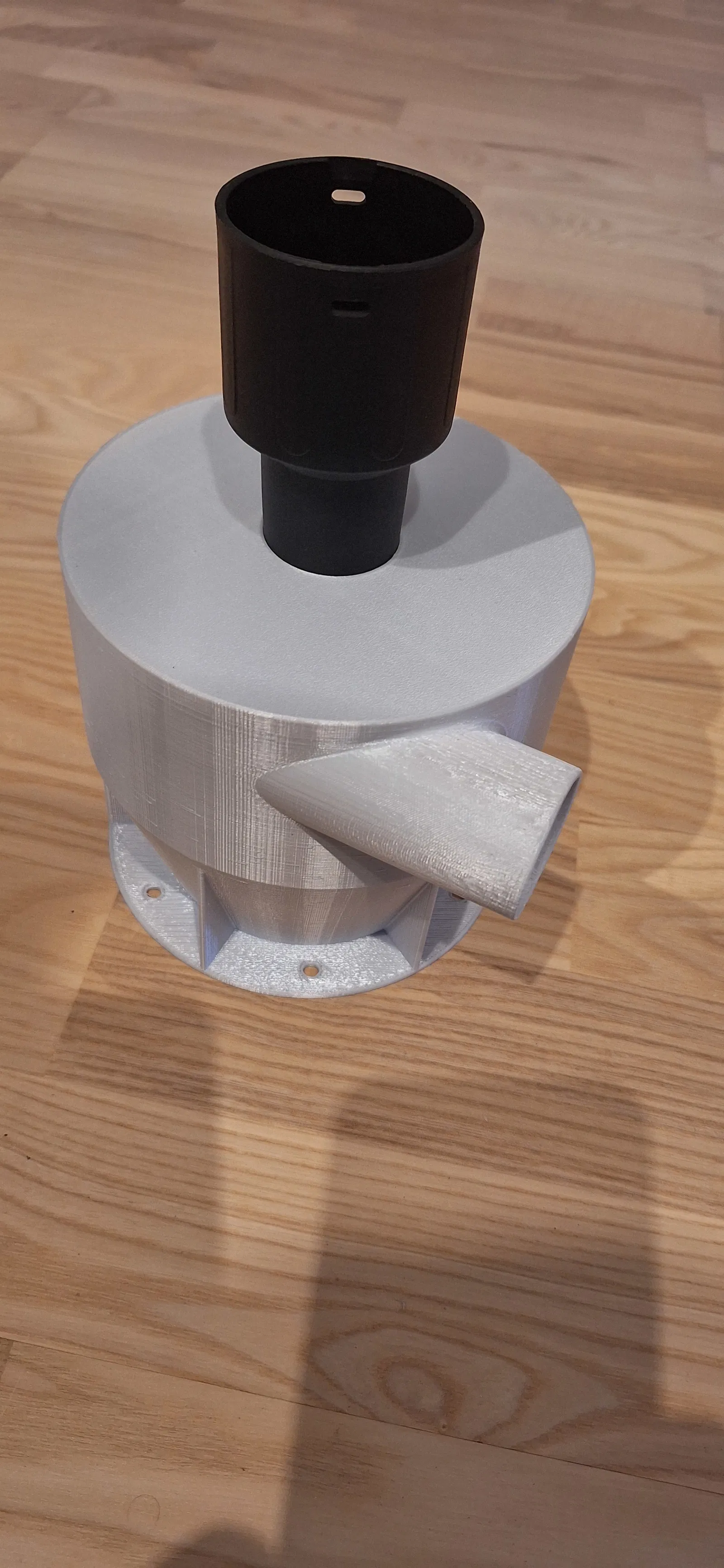 Bộ tách bụi Cyclone này gồm 5 phần chính, được thiết kế để tách rời khi in giúp hạn chế tối đa việc sử dụng support. Bạn cũng có thể chọn phiên bản mà thân chính đã được gắn sẵn ống dẫn khí. File mới nhất "ALL IN ONE" bao gồm toàn bộ mô hình cyclone cùng với một ống dẫn được cắt sẵn ở bên trong. Bộ tách bụi Cyclone này được trang bị van chống xẹp (anty implosion valve) để bảo vệ thiết bị và thùng chứa bụi của bạn. Đầu nối phù hợp với ống máy hút bụi 35mm, nhưng bạn có thể dễ dàng in thêm adapter để vừa với các chuẩn khác. Bạn cần 4 vít nhỏ 3mm để gắn phần trên (hoặc dùng keo dán), 6 bộ vít + ốc M5 để cố định vào thùng chứa và phần bảo vệ đáy. Cần thêm 1 vít + ốc M4 và lò xo để lắp van chống xẹp. Ống bên trong cần dán bằng keo 502, có thể dùng thêm keo nến để chắc chắn hơn. Phần đáy bảo vệ không bắt buộc phải có nhưng giúp tăng độ bền. #EDIT: Đã thêm chi tiết 'Cyclone-insert-turbine' để cải thiện luồng khí, có thể gắn vào tất cả các phiên bản như trong hình, nhớ dùng keo 502 để cố định. ##EDIT: Có thêm mặt bích đáy mới, lắp đặt đơn giản hơn. Thêm adapter cho ống Starmix để kết nối với ống Starmix hoặc Bosch GAS 25. Đã cải tiến thân chính bản 'all in one' phiên bản 3 với ống trong dài hơn để tách bụi tốt hơn. Với ai đã in thân chính trước đó, tôi có thêm một insert bổ sung (không tương thích với insert turbine). Cũng đã có mặt bích đáy mới giúp lắp ráp cyclone dễ dàng hơn và làm khuôn để cắt nắp thùng chứa. ###EDIT: Thêm file phần đáy mới đa năng hơn. File cũ “CYCLONE-Bottom-Prot” chỉ phù hợp cho bụi mịn và có thể bị hỏng nếu hút phải vật cứng. ####EDIT: Thêm nắp van mới, chỉnh sửa giúp ngăn ngừa hiện tượng lệch van trên thân chính số 4.
