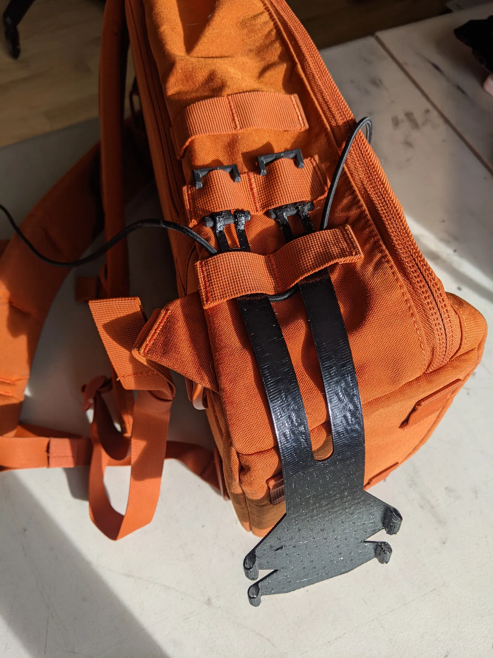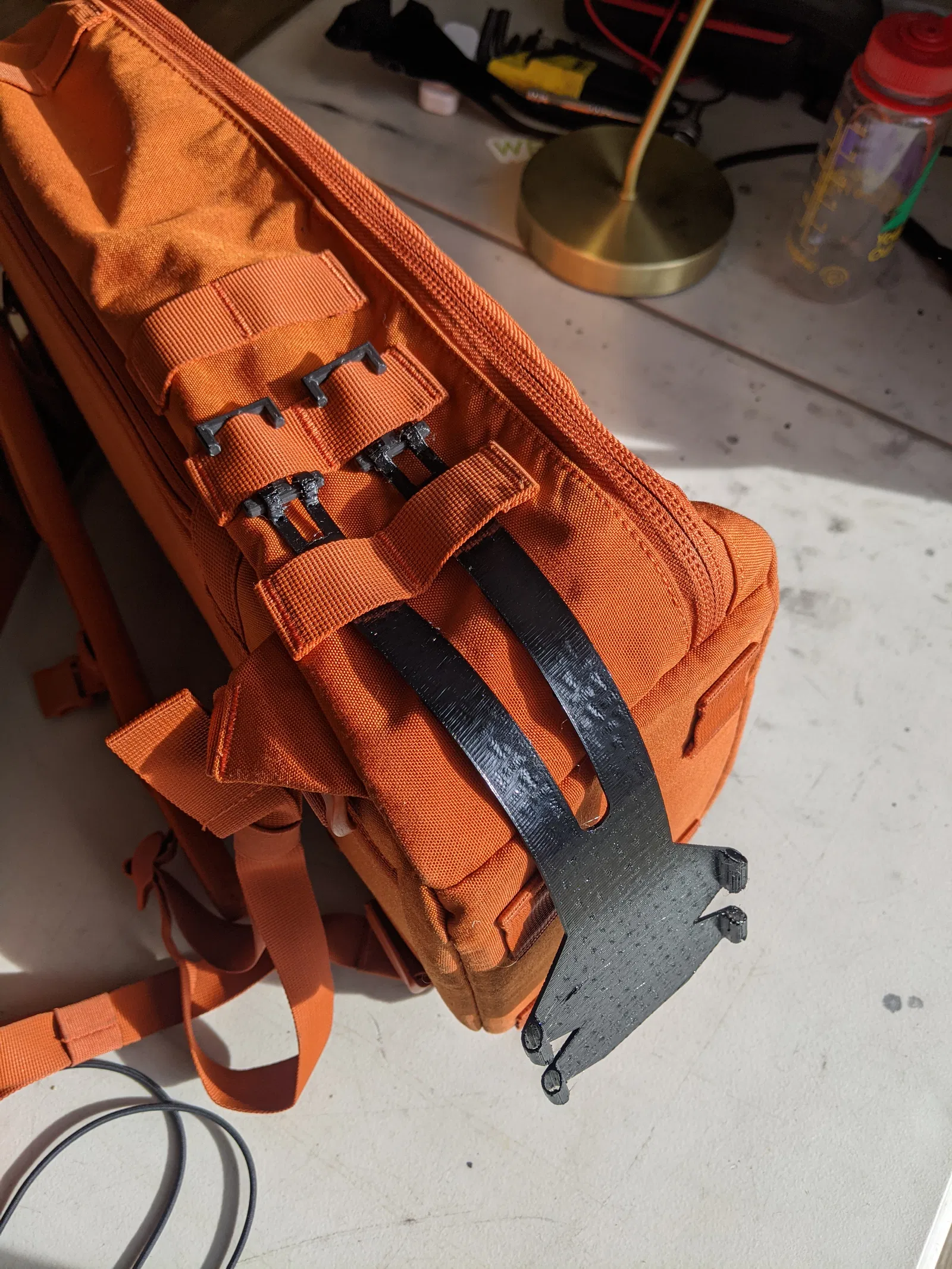 Hiện nay trên thị trường đã có một vài mẫu giá đỡ bình nước chuẩn MOLLE, nhưng đa số chúng thường khá cứng. Điều này làm hạn chế khả năng linh hoạt của balo hay bề mặt gắn và dễ gây hỏng hóc nếu không dùng loại nhựa kỹ thuật cao cấp. Để khắc phục, mình đã thiết kế mẫu giá đỡ này với phần thân chính bằng TPU và chỉ dùng nhựa cứng cho hai chiếc kẹp nhỏ. Nó có thể tùy chỉnh để vừa vặn với các bình nước có kích thước khoảng 32oz (Nalgene) trở xuống, thiết kế gọn gàng giúp tránh vướng víu khi không sử dụng. Mẫu này in vừa vặn trên bàn in Prusa 250x210mm thông thường. Trong ảnh mình gắn thử trên túi Ctactical CT21, nhưng thực tế mình dùng chủ yếu trên chiếc Goruck GR2 của mình.