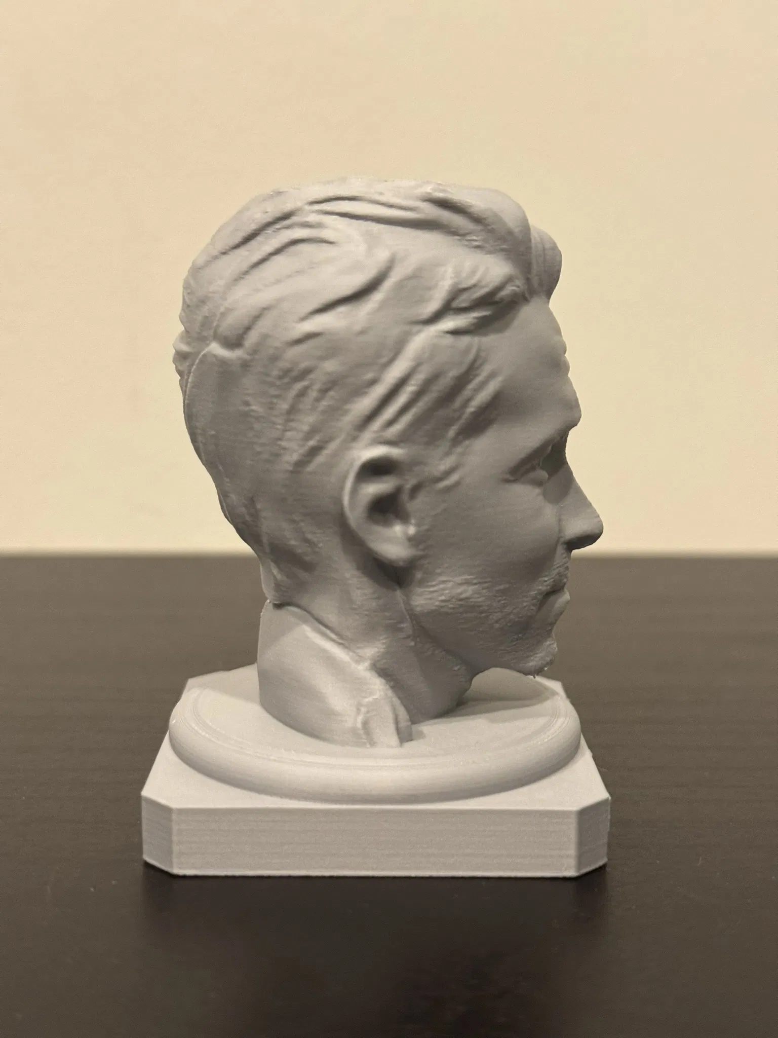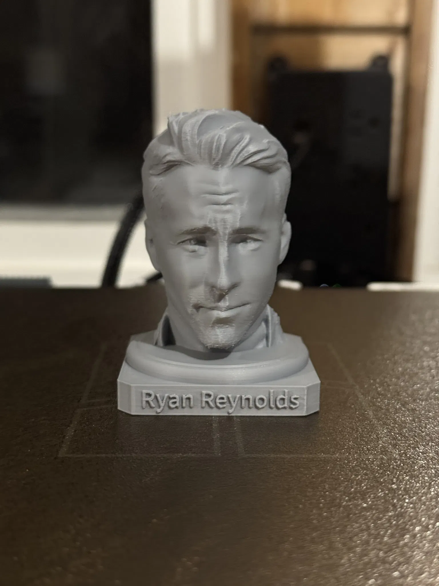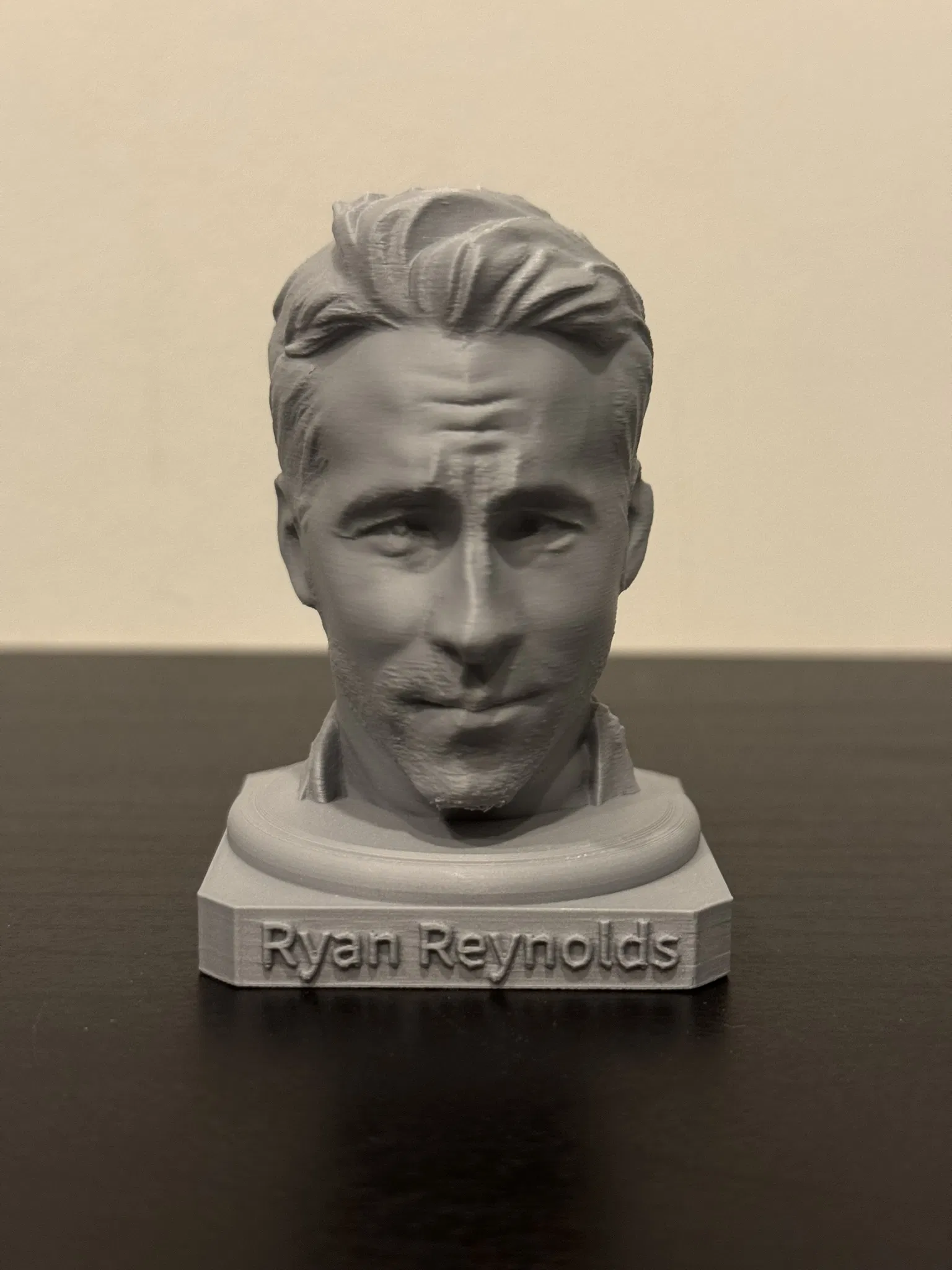 Mình đã dùng tính năng Make My Statue của Bambu Lab để tạo ra bức tượng của Ryan Reynolds huyền thoại này. Bản đẹp hơn trên Maker World: https://makerworld.com/en/models/1020149#profileId-1001183 Nên dùng nozzle 0.2mm để có kết quả tốt nhất. Cần phải có support.