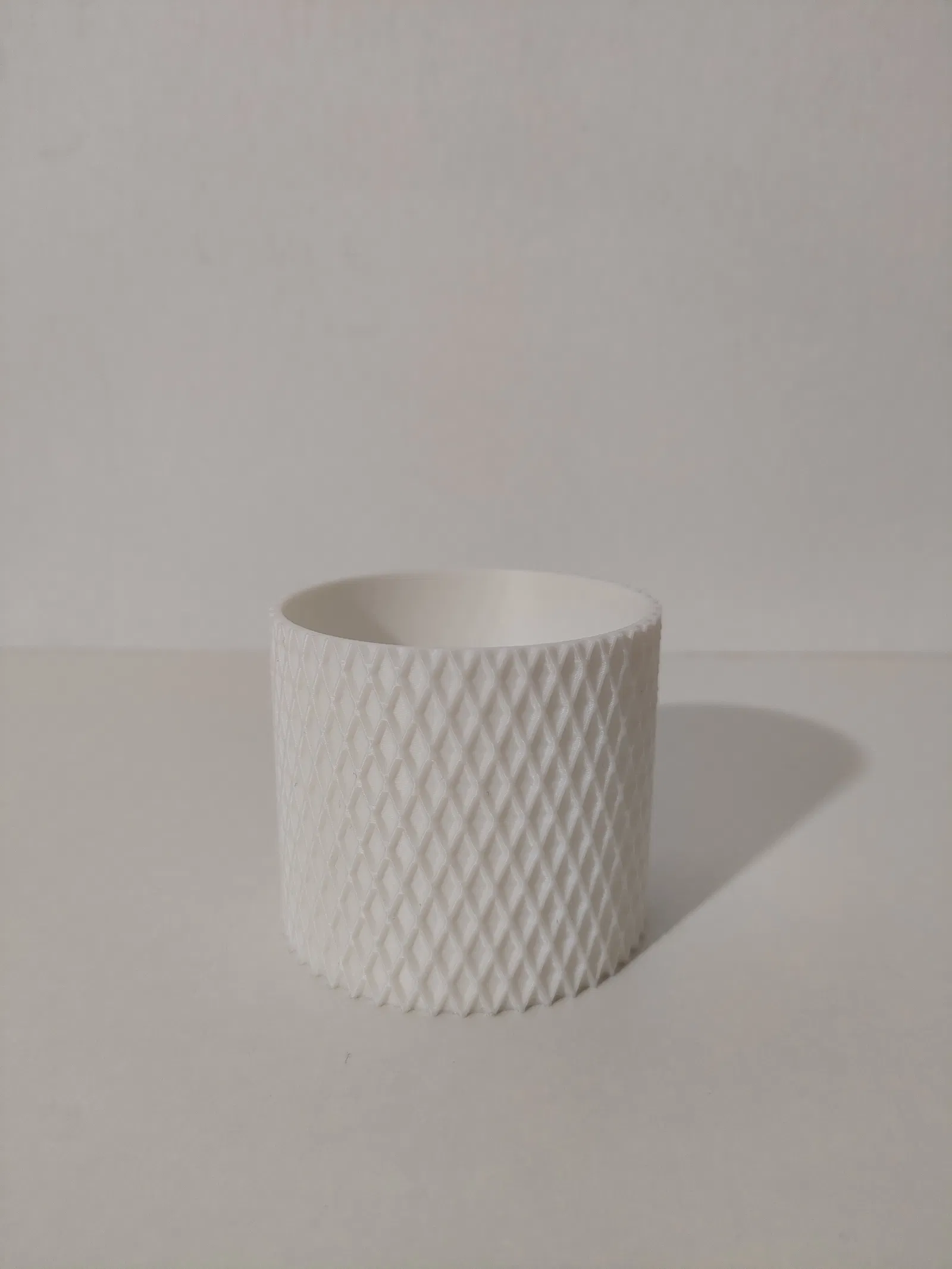 Nếu bạn đang tìm kiếm một món phụ kiện nhỏ xinh để tô điểm cho góc làm việc hoặc bàn học, thì mẫu chậu cây mini in 3D này chính là lựa chọn hoàn hảo. Với thiết kế hình trụ đơn giản kết hợp cùng họa tiết lưới kim cương nổi bật trên bề mặt, sản phẩm mang lại vẻ đẹp hiện đại, tinh tế và cực kỳ bắt mắt. Bạn có thể sử dụng nó để đựng các loại cây mọng nước, sen đá hoặc bất kỳ loại cây cảnh nhỏ nào mà mình yêu thích.