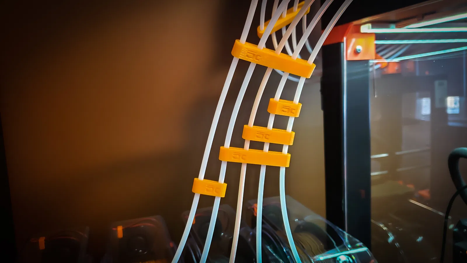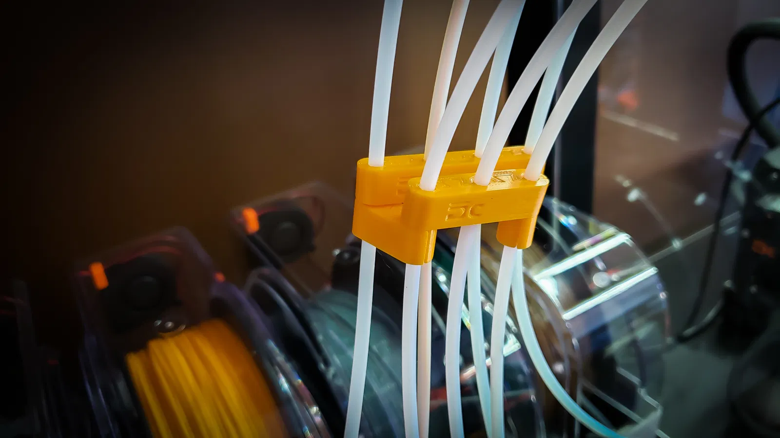 Đối với dàn máy của mình, mình cần một vài kẹp ống thẳng loại 5 ống và 4 ống. Sau khi in xong, mình nghĩ tại sao lại phải gò bó trong các kiểu kẹp thẳng đơn thuần? Giống như chơi LEGO hay Knex vậy, nếu bạn có đủ các mảnh ghép, bạn có thể tự lắp ráp bất kỳ kiểu dàn ống nào mình muốn, không còn bị giới hạn ở việc xếp hàng ngang nữa. Hoặc đơn giản là dùng chúng để gom gọn các cuộn ống PTFE lại cho ngăn nắp.