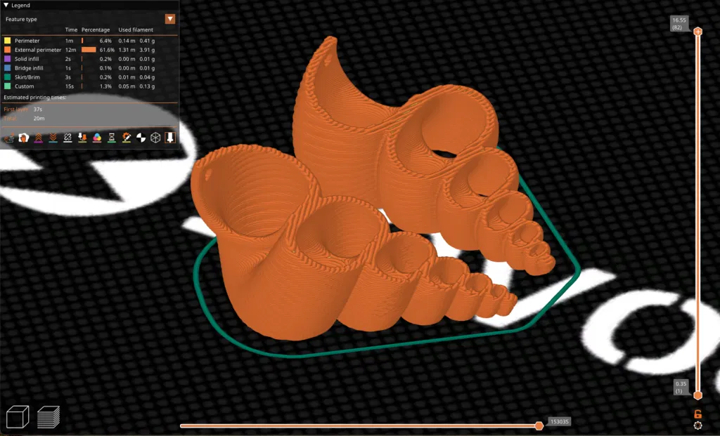- Thiết lập in: Nên sử dụng chiều cao lớp (layer height) từ 0.12mm đến 0.2mm để các đường vân xoắn ốc trông mịn màng và chi tiết nhất.