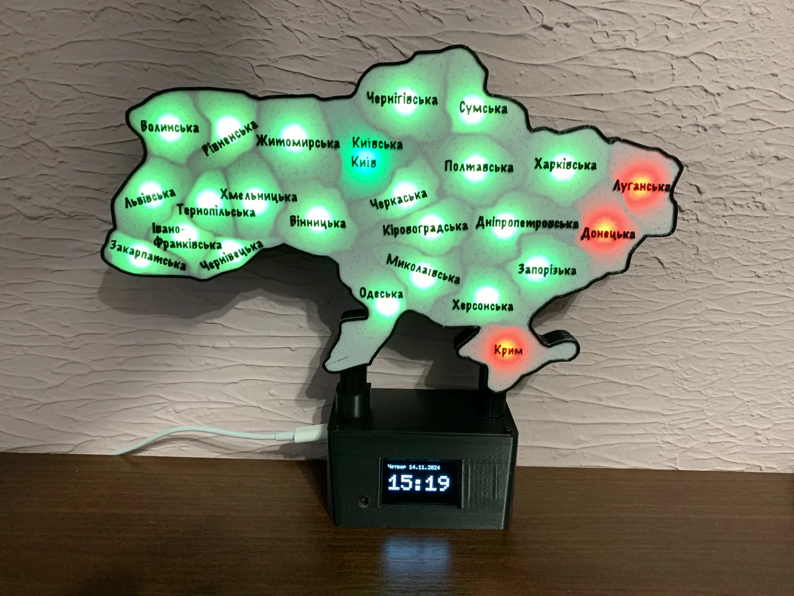 Bản đồ cảnh báo Ukraine được thiết kế lại để chứa 2 pin 18650, mạch UPS 5V, màn hình và nút cảm ứng. Tác giả đã in ở tỉ lệ 125% và cố định linh kiện bằng keo nến. Xem hướng dẫn và mã nguồn chi tiết tại link GitHub đính kèm.