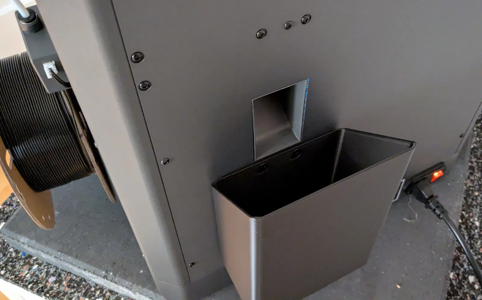 Thùng chứa rác nhựa (Poop Bucket / Waste Catcher) này được thiết kế để gắn trực tiếp vào hai ốc vít ở mặt sau máy in.
