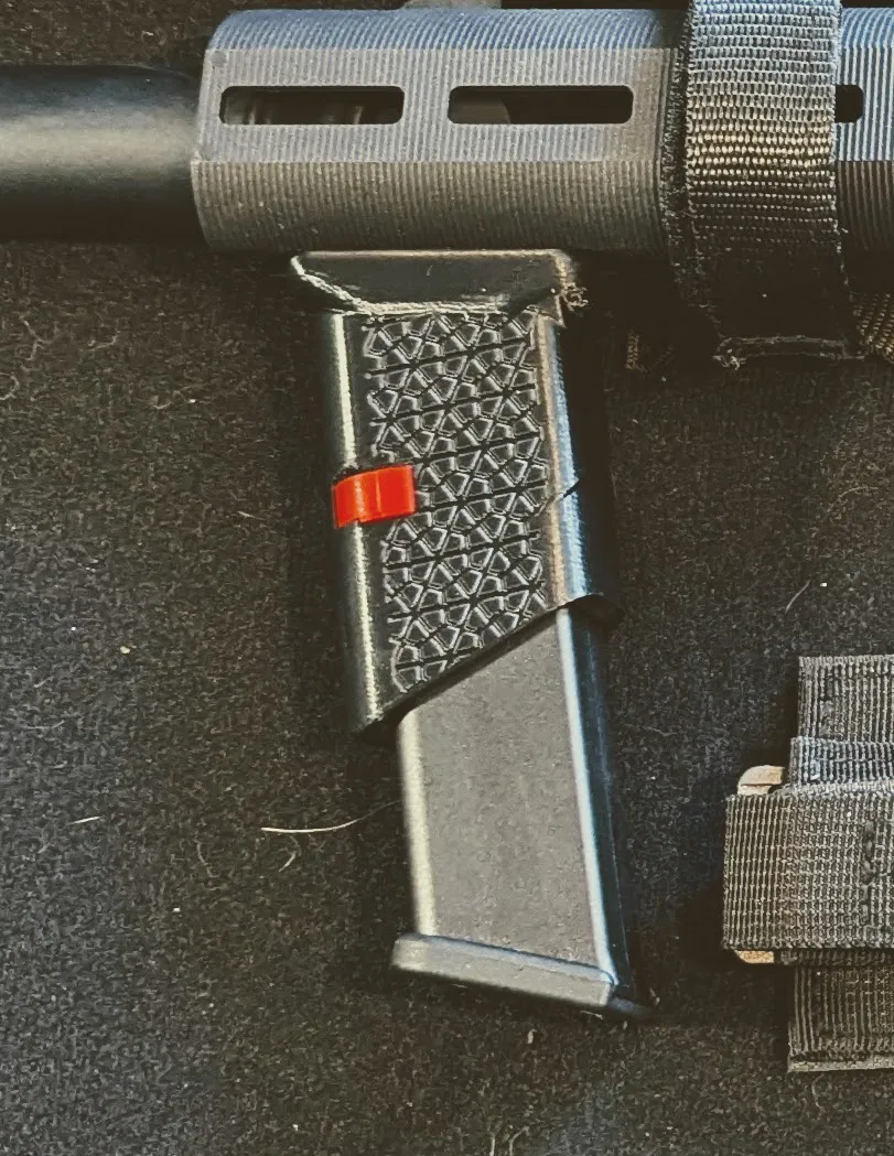 Đây là tay cầm dọc (forward pistol grip) có ngàm M-LOK giúp gắn thêm một băng đạn Glock dự phòng cho súng của bạn. Bạn sẽ cần một lò xo chốt giữ băng đạn (mag release spring), hoặc có thể tự chế bằng một chiếc kim băng lớn. Bạn cứ tìm trên Google nhé. Bạn cũng sẽ cần thêm một bộ ốc vít M-LOK.