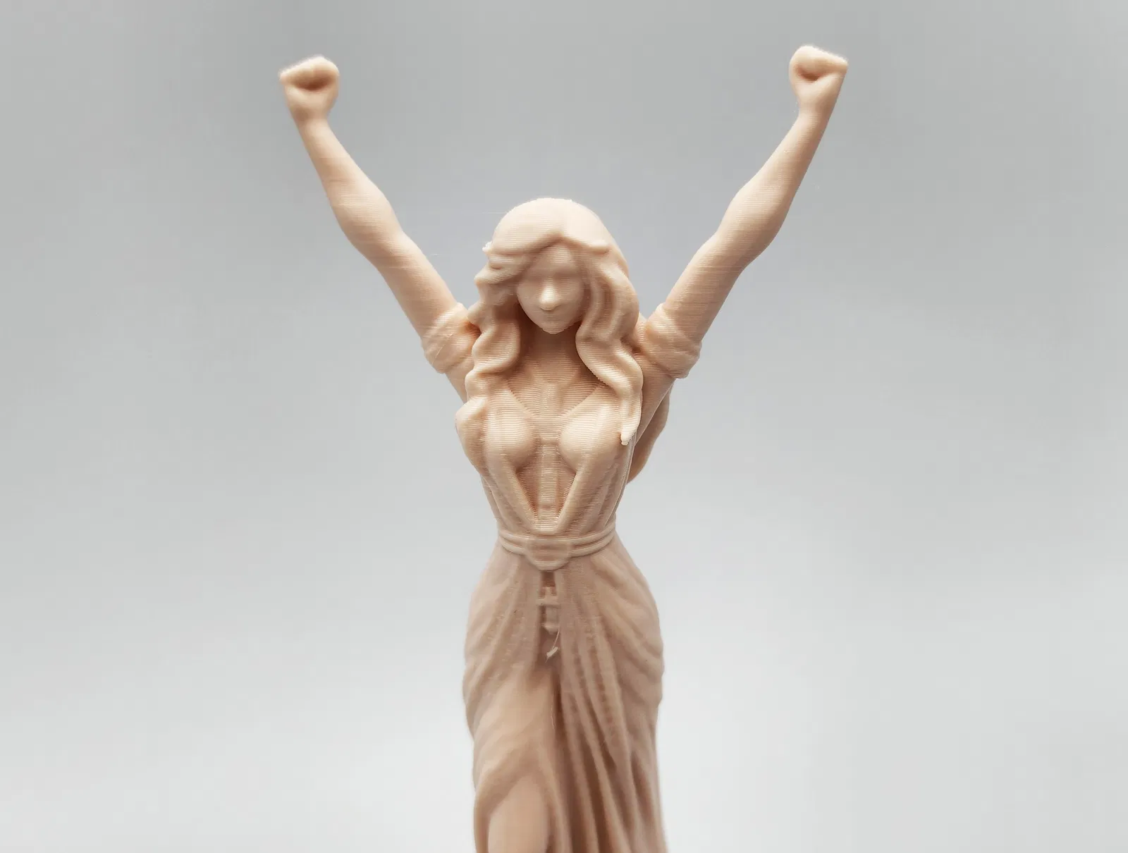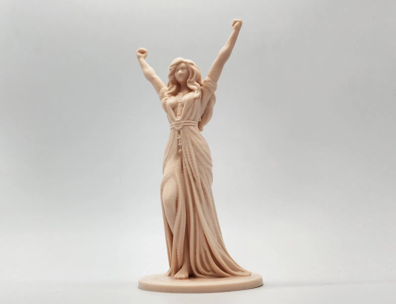 Tượng Nữ Thần Chiến Thắng với tư thế giơ tay đầy quyền uy, thể hiện sự áp đảo trước kẻ thù. Tác phẩm điêu khắc nghệ thuật này là điểm nhấn đặc sắc nằm trong bộ sưu tập Nữ thần của mình, hoàn hảo để làm vật trưng bày hoặc trang trí sưu tầm.