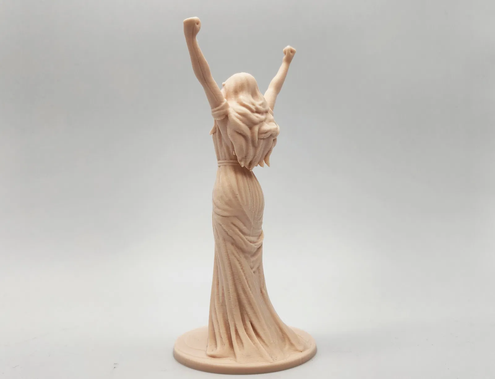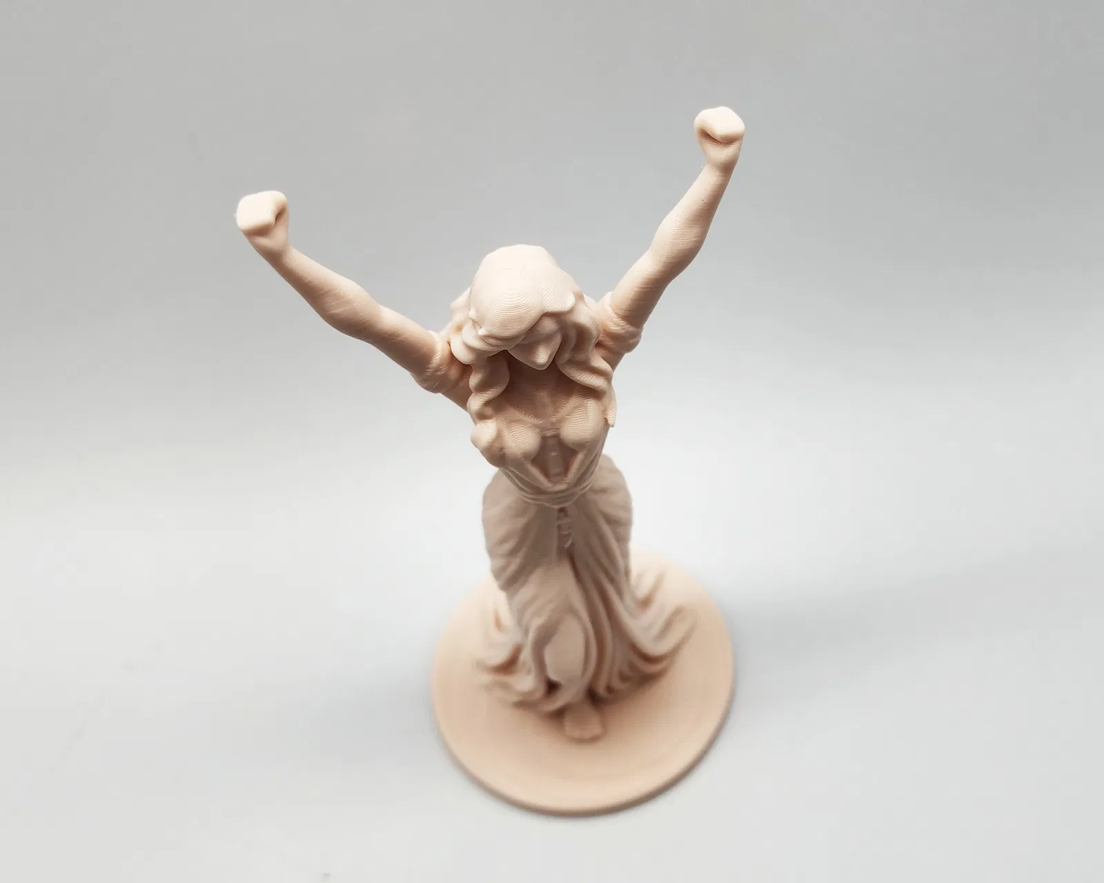 Nàng vươn đôi tay lên cao như một lẽ tự nhiên trong niềm kiêu hãnh chiến thắng, toát lên sự áp đảo trước những kẻ thù đã bị khuất phục. Đây là một phần nằm trong bộ sưu tập Nữ thần của mình.