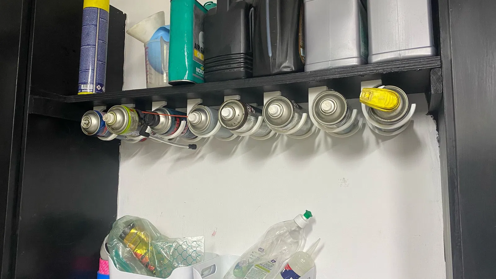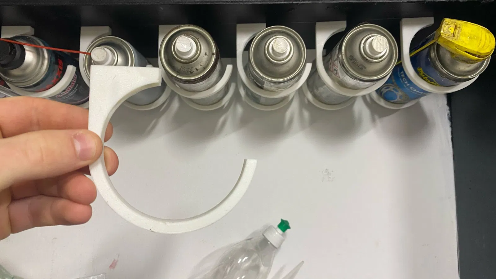 Mẫu giá treo bình xịt được thiết kế để lắp đặt dưới kệ theo chiều ngang. Với bán kính 80mm, sản phẩm phù hợp cho nhiều loại bình xịt khác nhau, dễ dàng lắp đặt bằng vít và đảm bảo độ bền chắc chắn khi sử dụng nhựa PLA với cấu trúc in tối ưu.