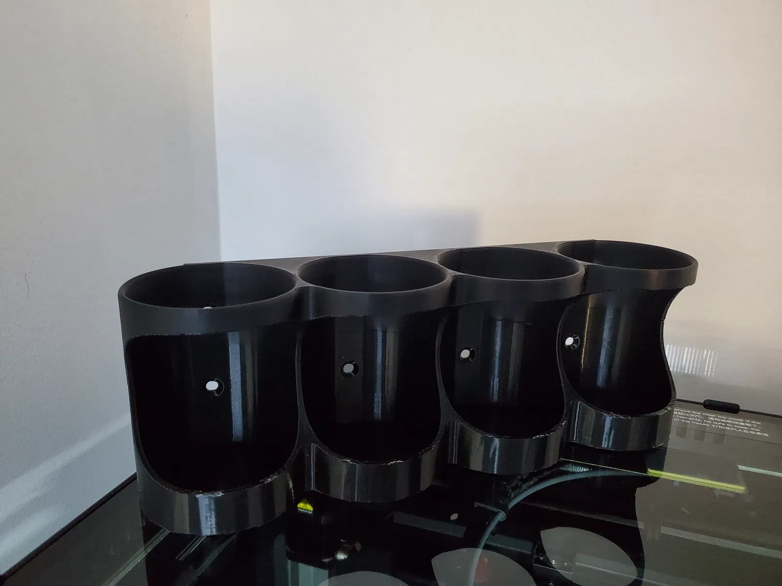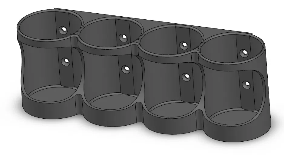 Giải pháp treo 4 bình xịt tiện lợi, có thể gắn tường hoặc xe đẩy bằng vít M5. Lỗ treo đường kính 70mm, sâu 97mm, giúp không gian garage của bạn gọn gàng và chuyên nghiệp hơn hẳn.