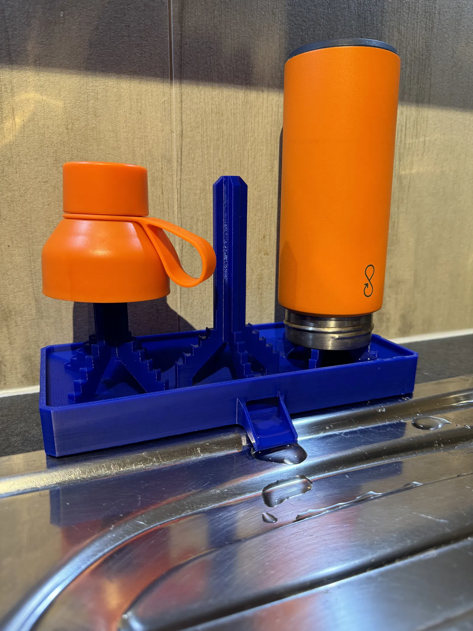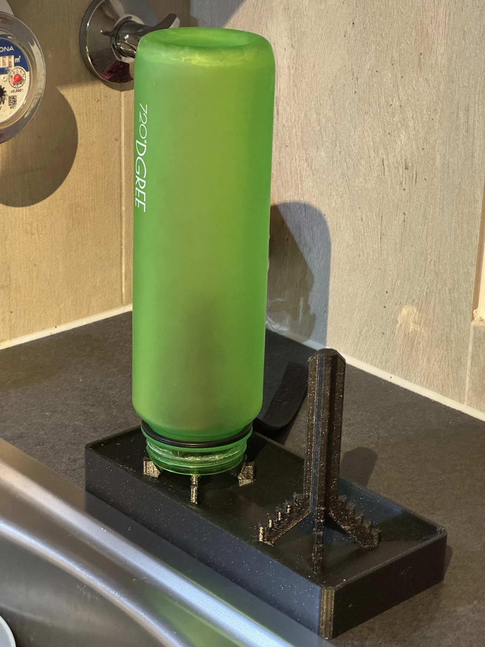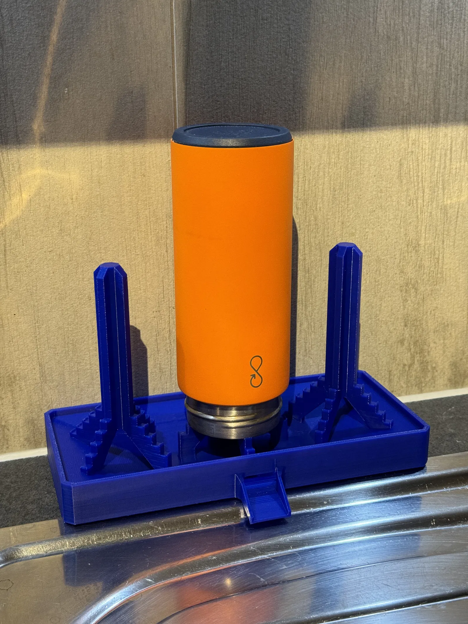 Đây là cái giá phơi bình nước cuối cùng mà bạn cần in ;o) Sau khi đã in và dùng thử vô số loại giá phơi, kệ và thiết bị cho các bình nước thể thao, mình không tìm được cái nào ưng ý cả. Chúng thường quá hẹp, ọp ẹp hoặc dễ bị đổ khi để đầy bình vì phần đế không đủ rộng. Vì vậy, mình đã tạo ra “Dry-Pod”, một chiếc giá phơi đa năng cho hầu hết các loại bình. Phần đế rộng và cứng cáp giúp giữ thăng bằng cực tốt ngay cả khi treo các loại bình cao hoặc nặng như bình giữ nhiệt thủy tinh. Hai hoặc ba tháp phơi có thể giữ chắc chắn các loại bình có miệng từ 25 - 70 mm. Nước từ bình sẽ chảy xuống phần đế và thoát ra ngoài qua khe thoát nước ở phía trước, dẫn thẳng vào bồn rửa chén. Để đảm bảo nước thoát hoàn toàn mà không làm ướt mặt bếp, phần đế được thiết kế một hốc kích thước 10x15mm để gác lên cạnh bồn rửa. Nếu không cần tính năng thoát nước, bạn có thể chọn in phiên bản không có khe thoát. Dry-Pod hiện có sẵn 4 phiên bản: 3 tháp có thoát nước (Lựa chọn của mình) 3 tháp không có thoát nước 2 tháp có thoát nước 2 tháp không có thoát nước Các phiên bản có lỗ thoát nước cần hỗ trợ (supports) cho phần hốc và có thể cho cả lỗ thoát (tùy vào khả năng bắc cầu - bridging của máy in). Phiên bản lớn nhất mất khoảng 6 tiếng để in trên máy Mk3.5S của mình (layer 0.2 mm, infill 15%, 2 lớp vỏ). Nếu bạn có góp ý gì để cải thiện, hãy để lại bình luận cho mình nhé (mình vẫn còn khá mới trong việc thiết kế 3D). Mình cũng đã làm một chiếc giá để miếng rửa chén với thiết kế tương tự, bạn có thể tham khảo thêm. Chúc bạn in vui vẻ :) Cập nhật: Nếu bạn không cần phần hốc để gác lên bồn, hãy xem thử bản remix của Adeta.