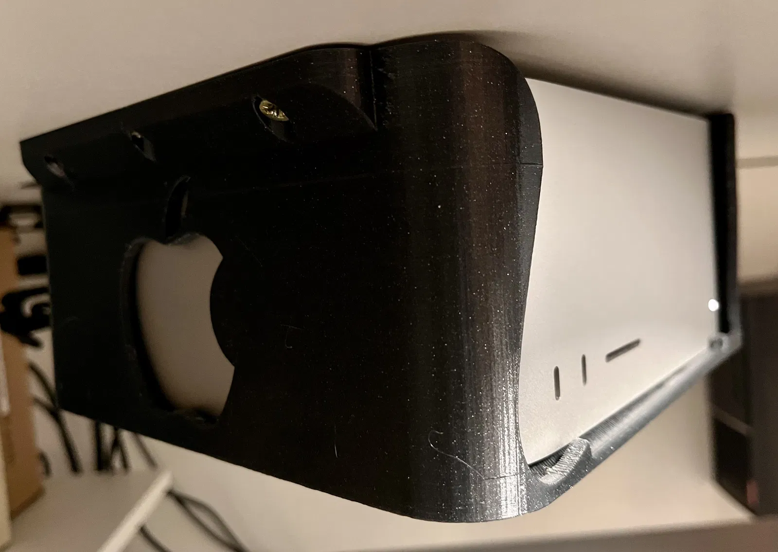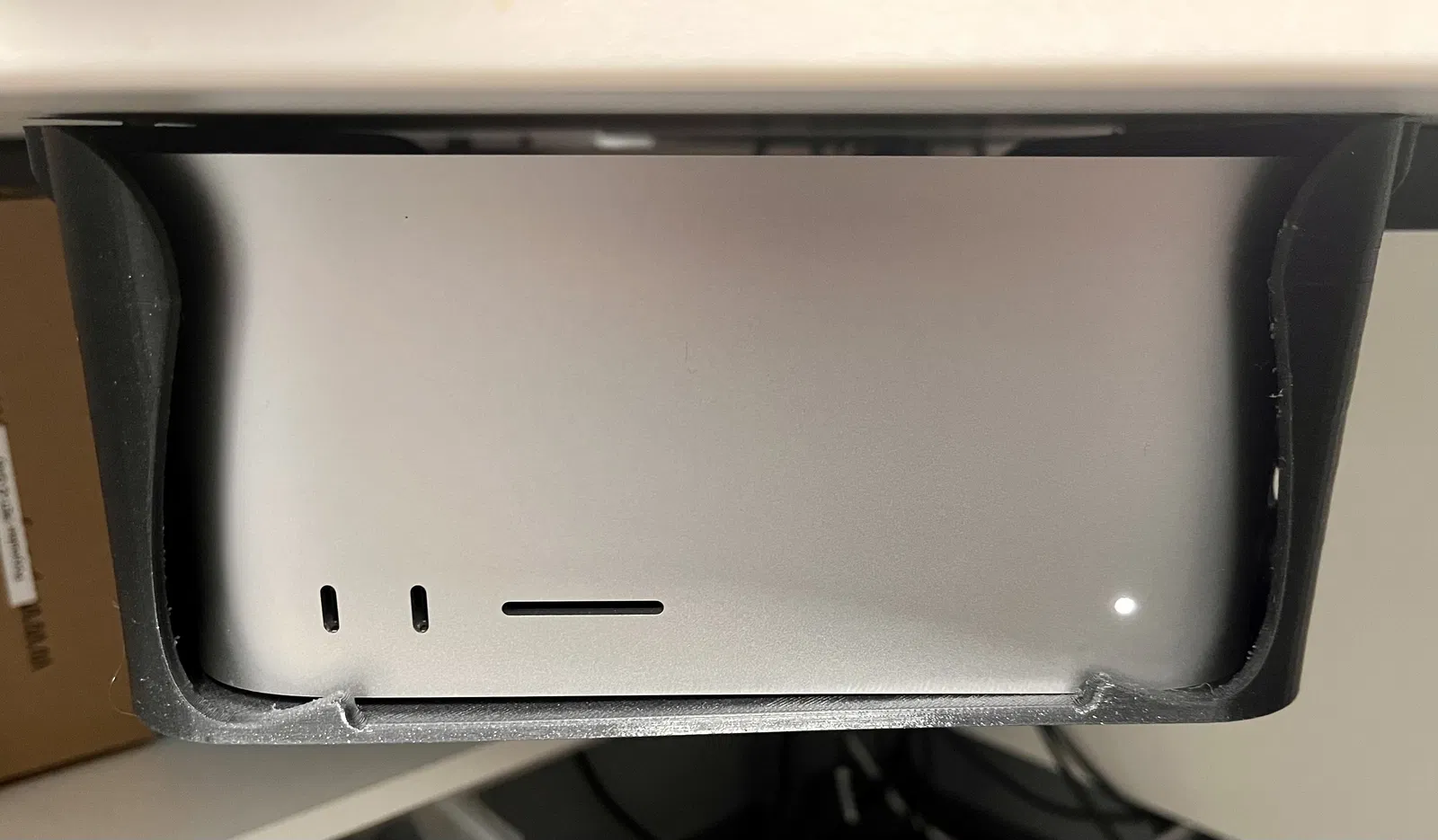 Giá treo Mac Studio dưới gầm bàn giúp giữ các cổng kết nối thông thoáng mà không cản trở tản nhiệt. Thiết kế tối ưu, dễ lắp đặt và đảm bảo an toàn cho thiết bị của bạn. Lưu ý sử dụng chất liệu PETG khi in để có độ bền tốt nhất.