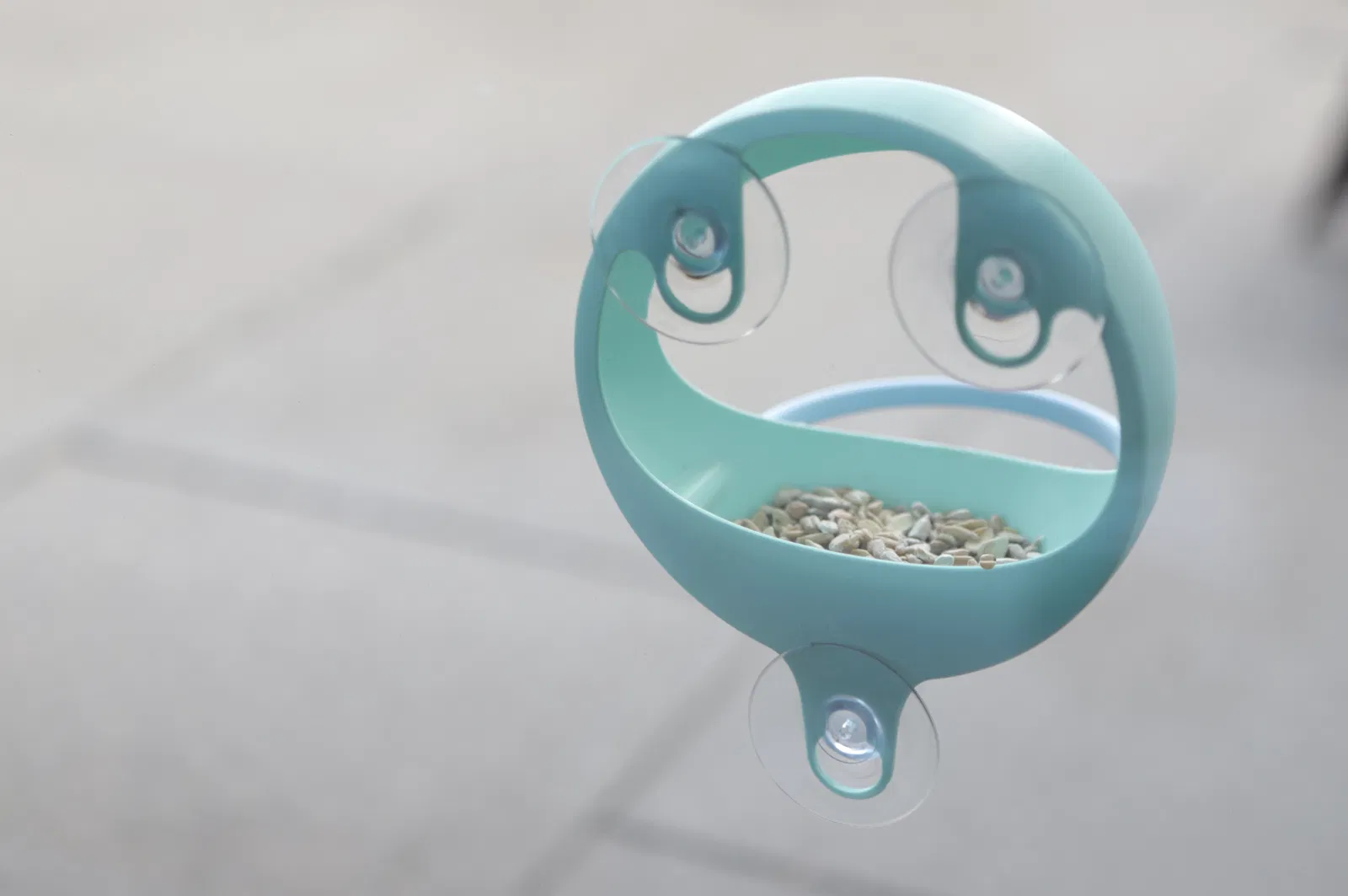 Đây là mẫu máng ăn cho chim được thiết kế để gắn lên cửa sổ bằng núm hít chân không.