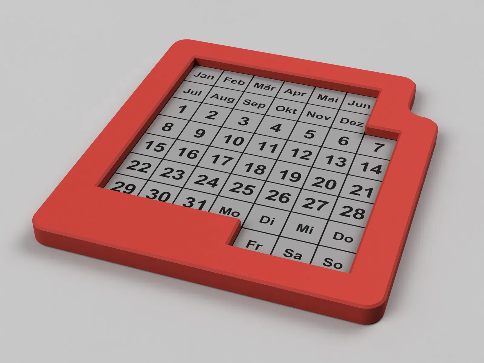 Một thử thách thú vị mỗi ngày trong năm! Bạn cần sắp xếp các mảnh ghép để hiển thị đúng tháng, thứ và ngày. Phiên bản cải tiến này giúp việc in ấn trên máy không có MMU trở nên dễ dàng hơn nhiều.