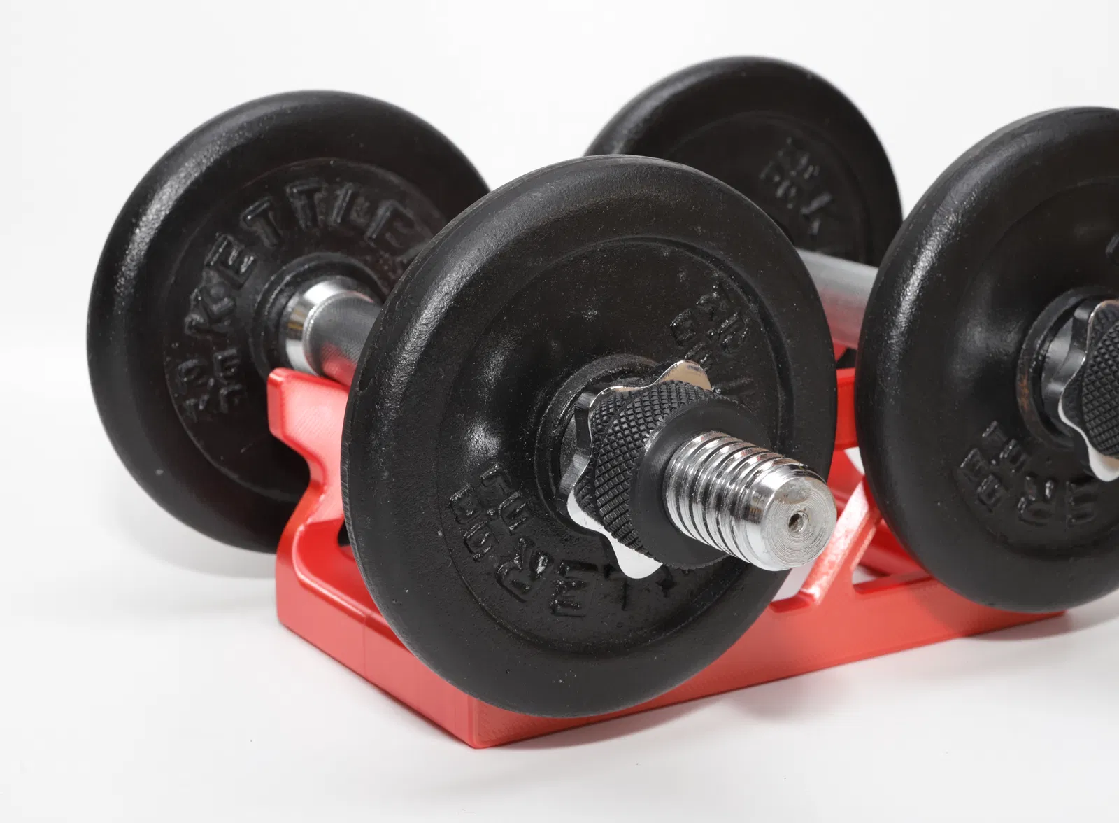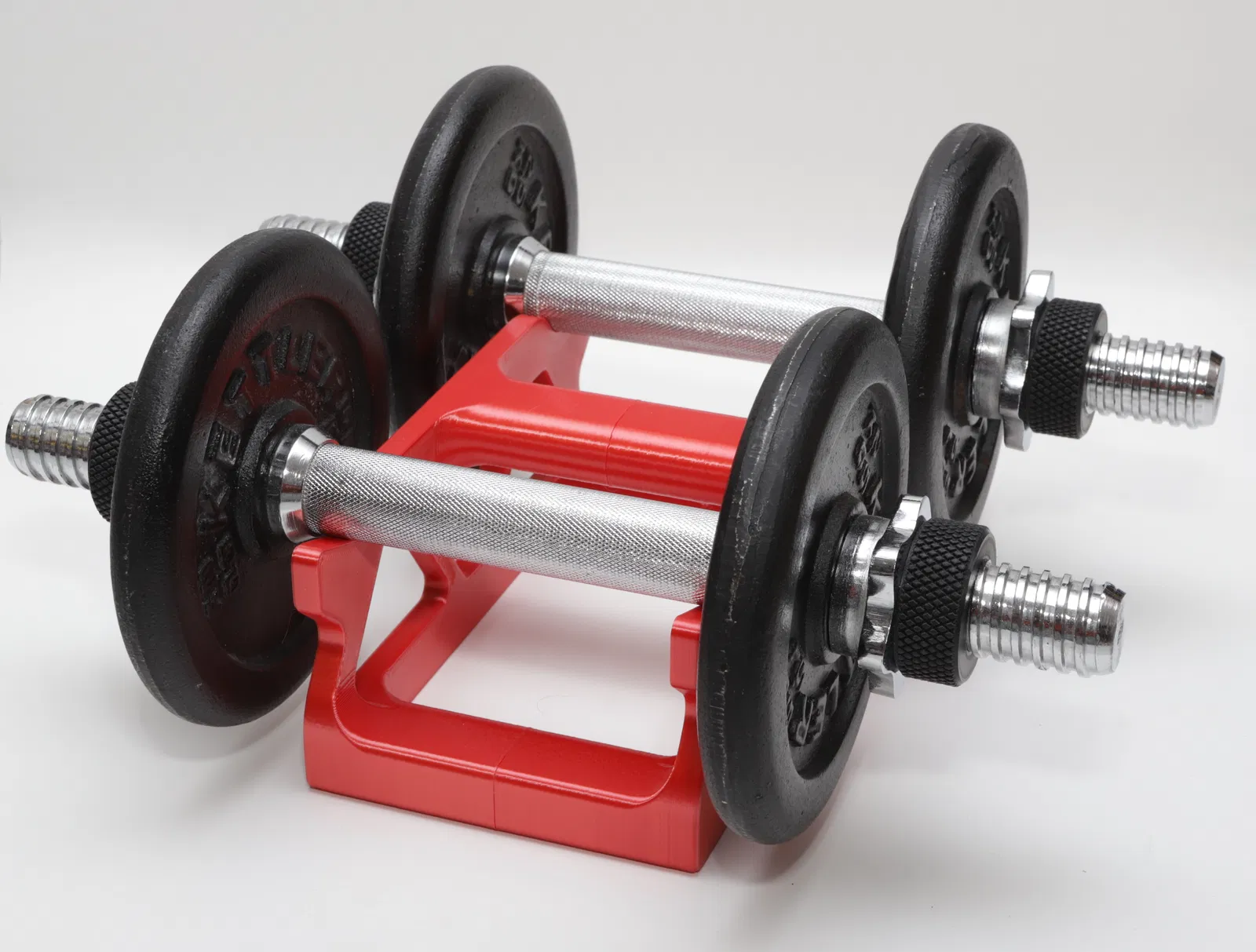 Giá đỡ cực kỳ chắc chắn dành cho một cặp tạ đơn, bạn có thể dễ dàng tùy chỉnh kích thước theo ý muốn bằng phần mềm Fusion 360 để phù hợp với bộ tạ của mình.