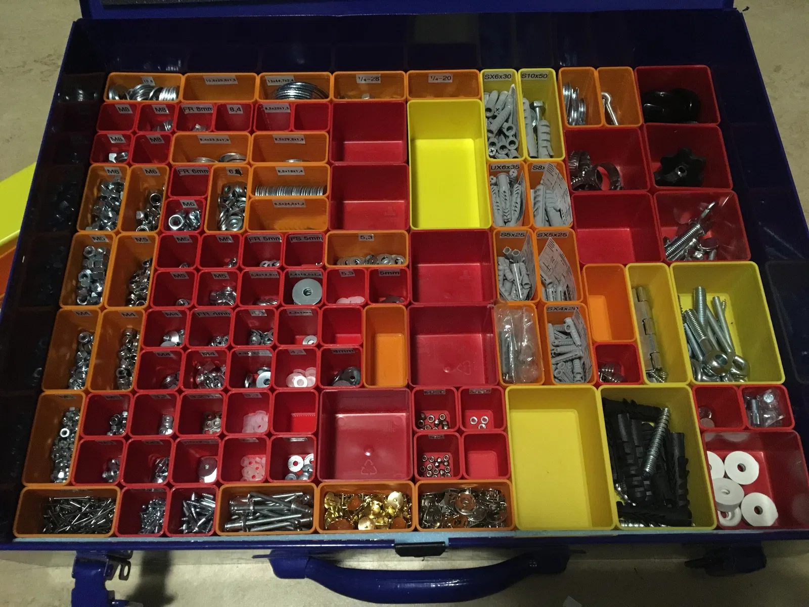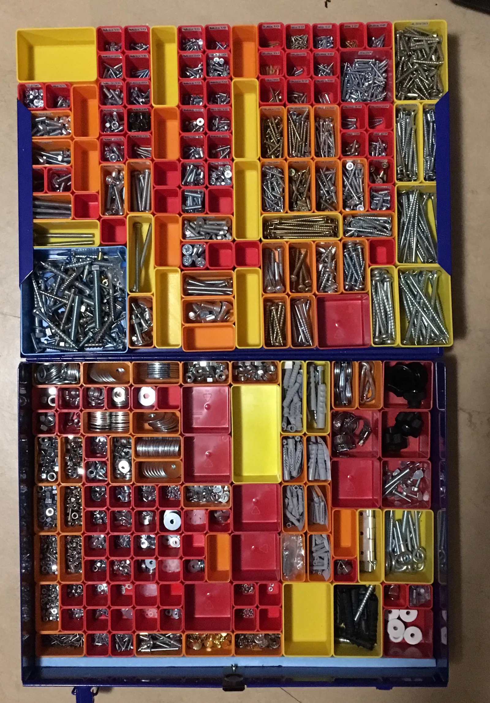 Để tối ưu hóa hộp đựng linh kiện Allit EuroPlus Pro của mình, mình đã thiết kế một số khay chứa tùy chỉnh để có thể cất giữ được nhiều loại linh kiện hơn trong cùng một không gian. Khay nhỏ nhất là loại 1x1, bằng một phần tư kích thước của khay nhỏ nhất mà hãng cung cấp.