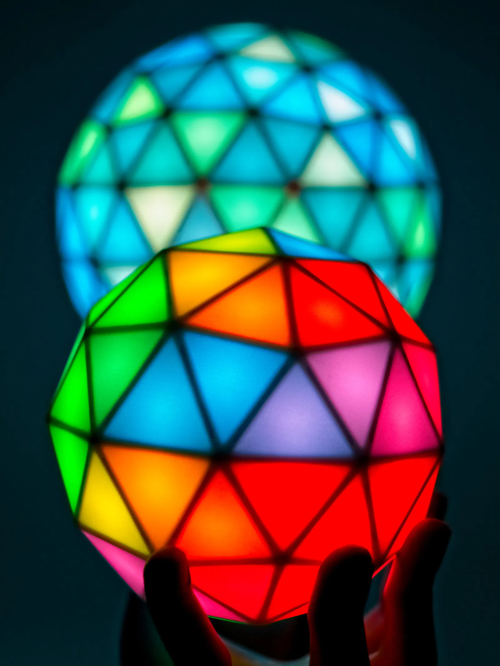 Hai quả cầu LED RGB với hình dáng giống như bạn đã biết từ các vòm geodesic, nhưng là hình cầu trọn vẹn.