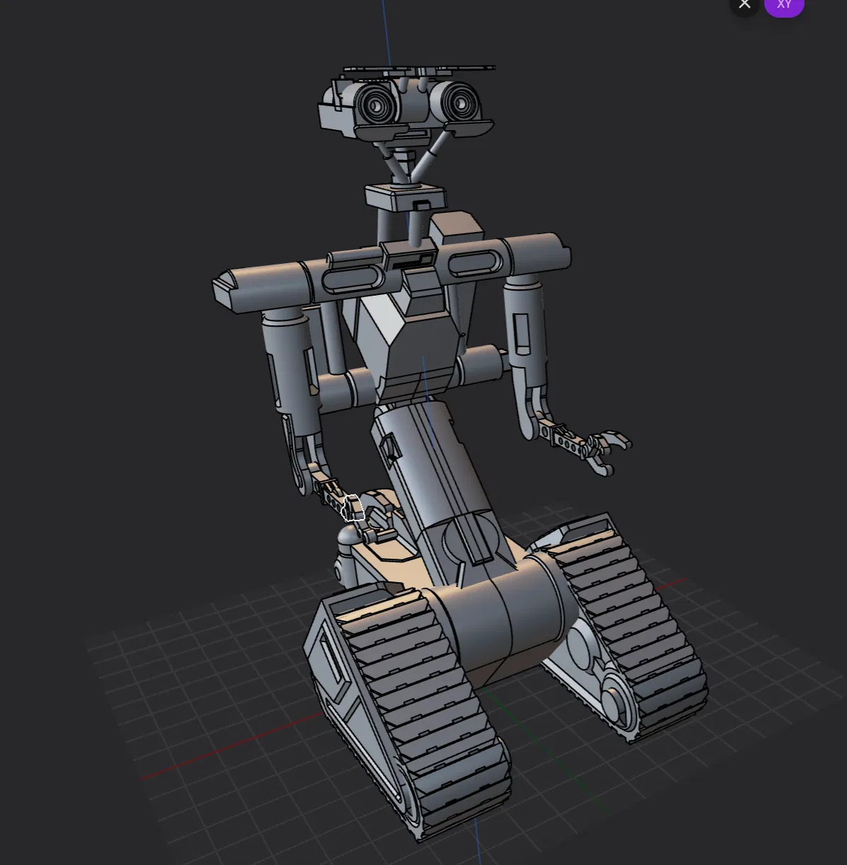 CẬP NHẬT - Mời bạn xem phiên bản 2.0 tại Đây là phiên bản Johnny 5 theo phong cách riêng của mình, được thiết kế từ đầu để tối ưu cho việc in 3D. Khác với những mẫu mã khác thường thấy trên các nền tảng, vốn đòi hỏi cấu trúc support phức tạp gây khó khăn khi hậu kỳ, mô hình của mình được tinh chỉnh để việc in ấn trở nên mượt mà nhất mà vẫn giữ được linh hồn của chú robot thân yêu. Mô hình này có thể không sở hữu những chi tiết siêu nhỏ như các bản khác, nhưng nó nắm bắt được thần thái, kiểu dáng và nét cuốn hút của Johnny 5 một cách dễ in hơn hẳn. Bạn sẽ cần sử dụng support giữa cụm bánh xích dưới và bánh sau để việc xử lý sau khi in gọn gàng hơn. Bạn có thể dùng chính đoạn nhựa in (filament) làm chốt kết hợp với keo dán để nối phần đầu trước và sau. Tương tự, phần màn trập mắt phía trên cũng được gắn bằng các đoạn nhựa, cố định nhẹ bằng một giọt keo siêu dính. Dùng kìm cắt nhựa để loại bỏ phần nhựa thừa nhô ra trên mắt là xong. Ngoài ra, bạn cũng có thể tận dụng nhựa màu để làm nổi bật đôi mắt. Toàn bộ mô hình có thể in vừa trên bàn in của máy Mini (7x7x7), nhưng mình khuyên bạn nên in riêng phần cẳng tay/bàn tay vì mình từng gặp vấn đề với độ bám dính của các bộ phận này trên bàn in. Bạn nên cân nhắc dùng đầu phun (nozzle) kích thước nhỏ, vì mẫu trong ảnh được in với đầu phun 0.6mm và độ dày lớp in 0.2mm.