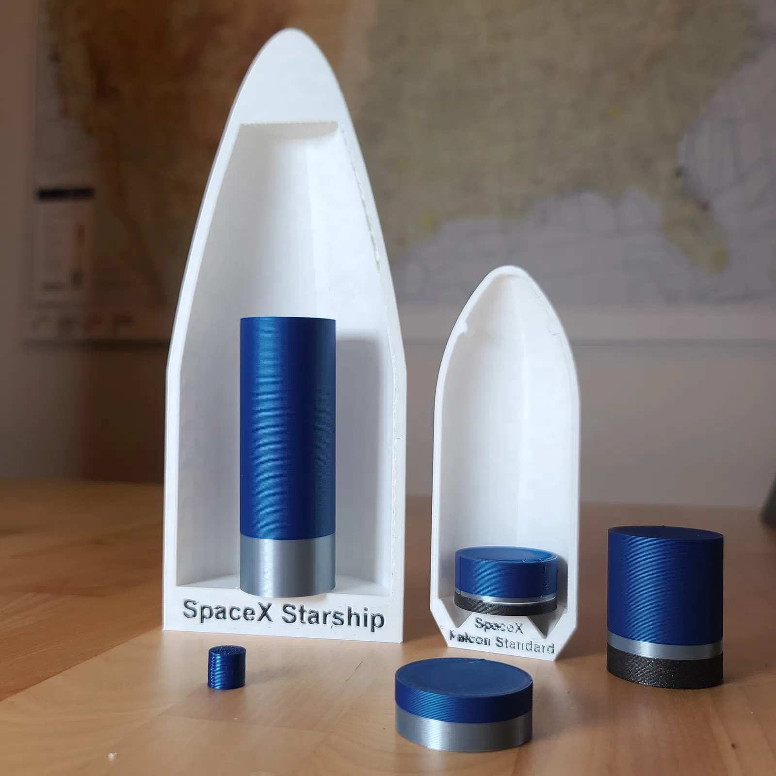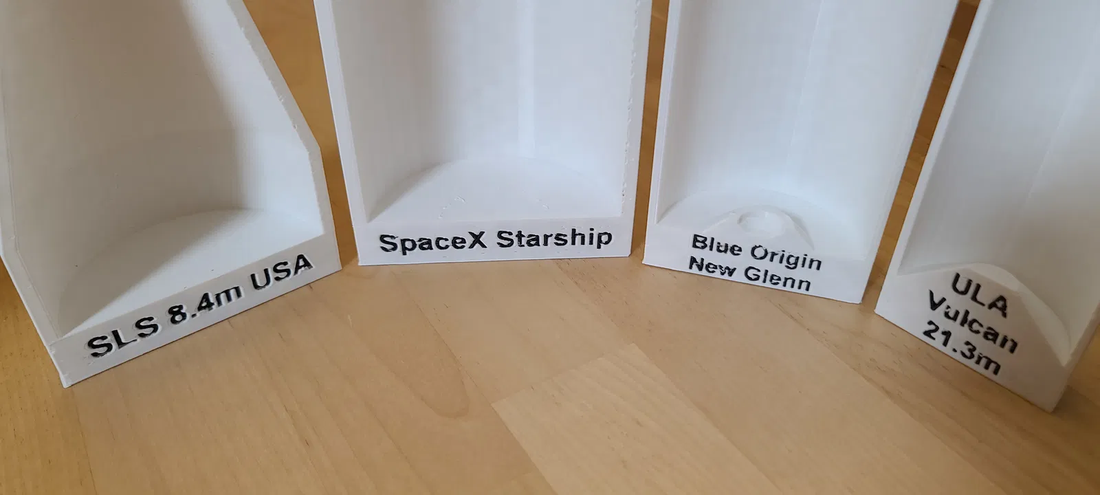 Các tải trọng (payload) không được bao gồm trong bộ này, nhưng tôi đã tổng hợp một số tệp in các vật thể liên quan đến không gian tại đây phù hợp với tỉ lệ 1:100.