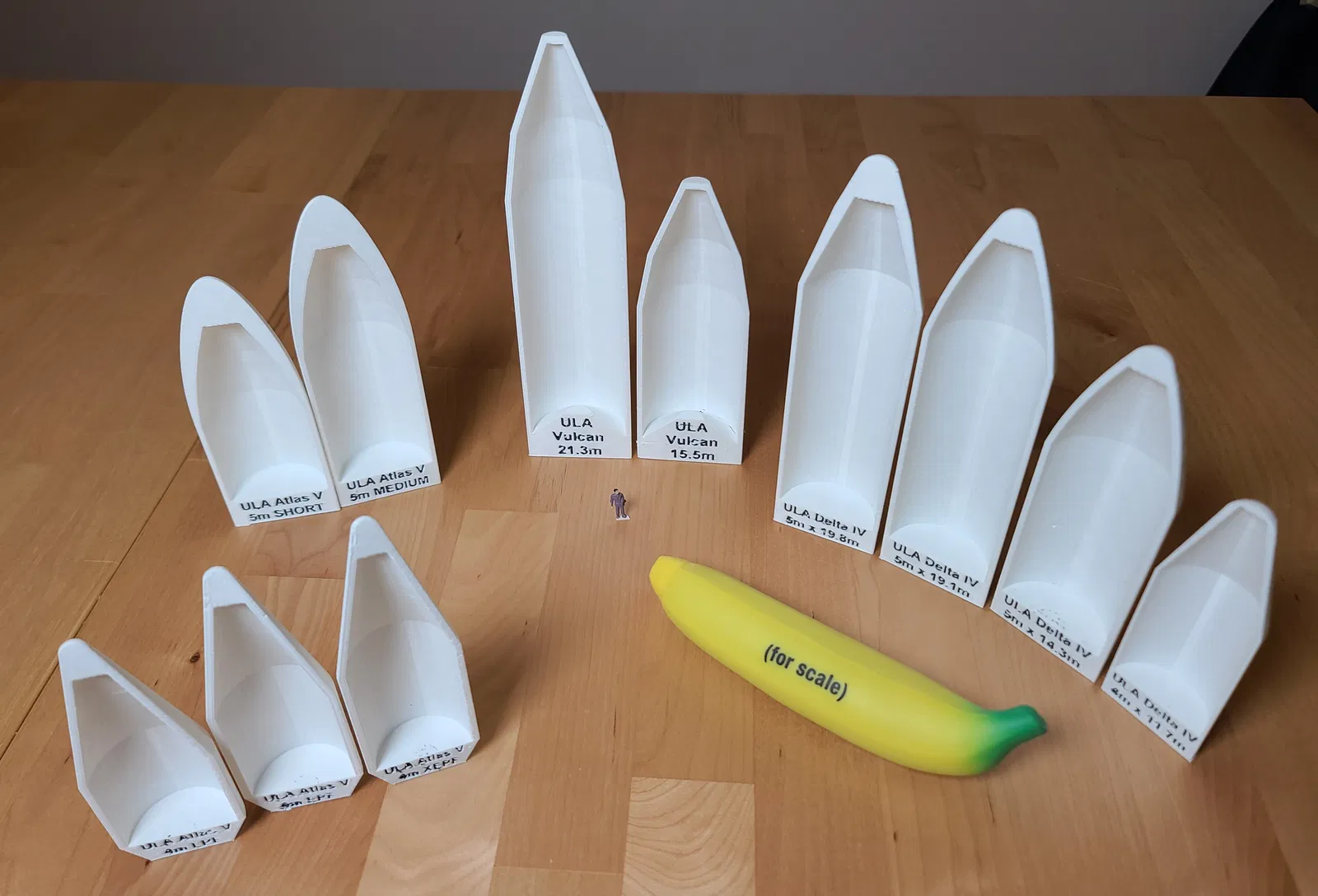 Bộ tệp 3D mô phỏng thể tích tải trọng (KIV) cho 11 hệ thống phóng quỹ đạo của Hoa Kỳ. Dựa trên các tài liệu PUG chính thức, dự án này cung cấp các mô hình chính xác để kiểm tra độ phù hợp của tải trọng với tỉ lệ in 1:100.