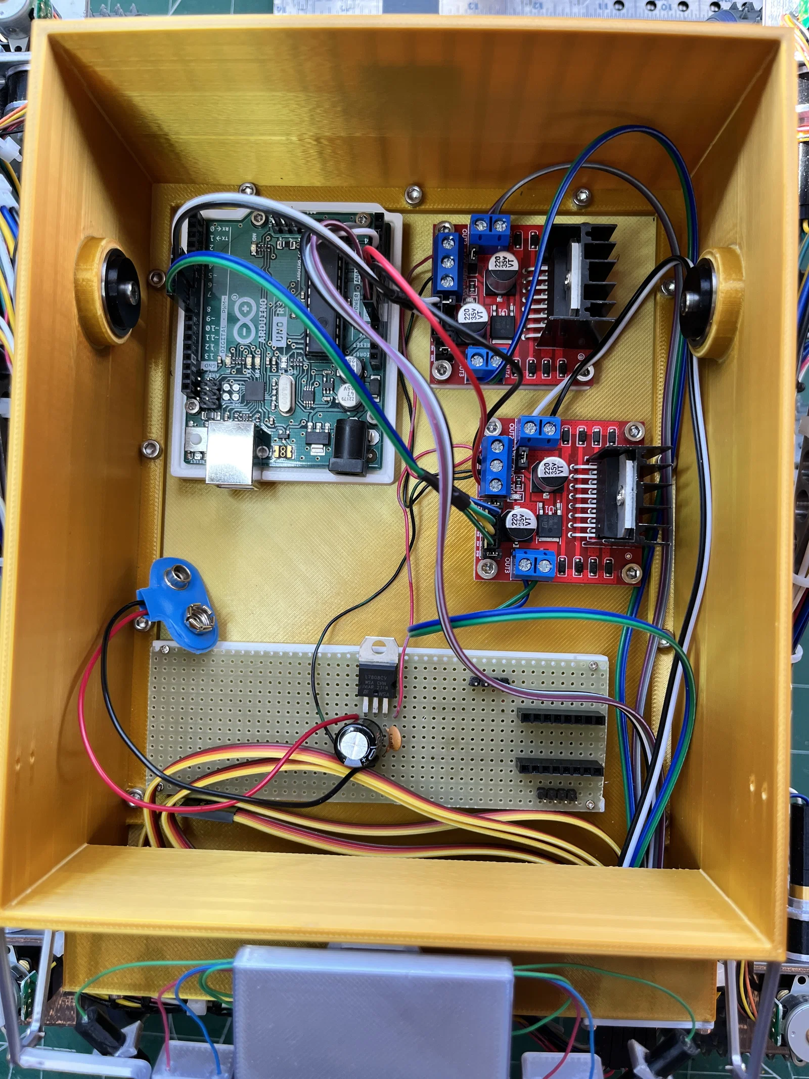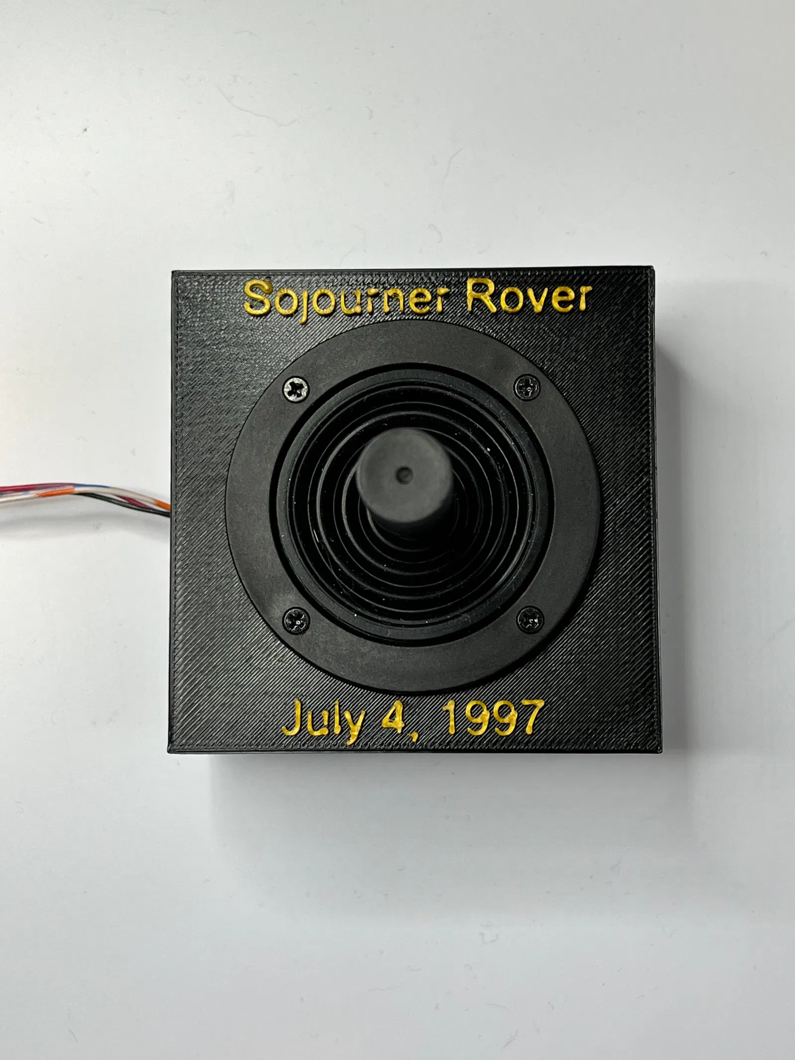 Mô hình xe tự hành Sojourner Mars Rover này được thu nhỏ theo tỷ lệ ½. Bạn có thể lắp thêm mô-tơ/stepper motor để điều khiển xe bằng tay cầm joystick hoặc chỉ đơn giản là để làm mô hình trưng bày. Để điều khiển mô-tơ, bạn cần dùng Arduino Uno để nhận tín hiệu từ joystick và truyền lệnh đến các mô-tơ. Lưu ý: Các loại servo kích thước tiêu chuẩn mà mình chọn dùng hoạt động tốt khi thử trên bàn làm việc nhưng lại không đủ lực để quay bánh xe khi chịu tải trọng của toàn bộ mô hình.