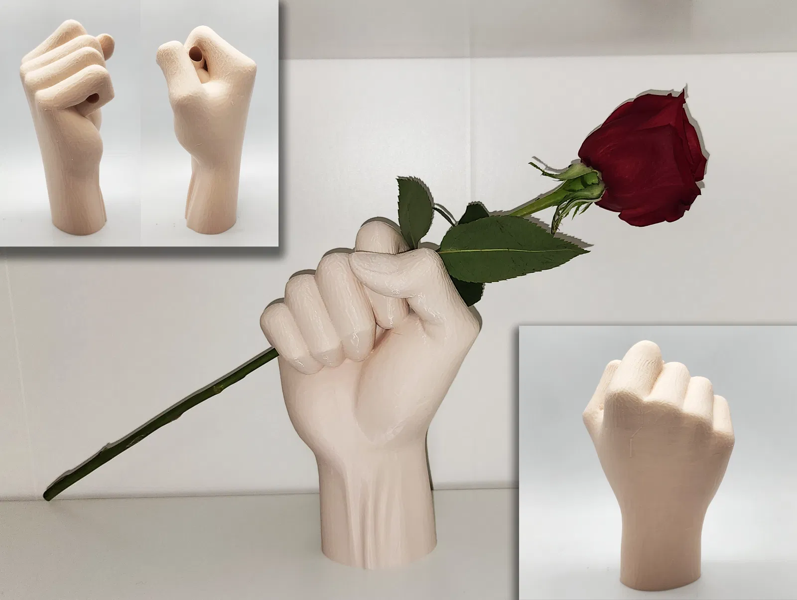 Mẫu điêu khắc bàn tay cầm hoa độc đáo với 2 phiên bản có đế và không đế. Thiết kế chắc chắn, giữ được 1 cành hoa lớn mà không bị ngã. Anh em nên sử dụng Tree Supports để in cho đẹp nhé.