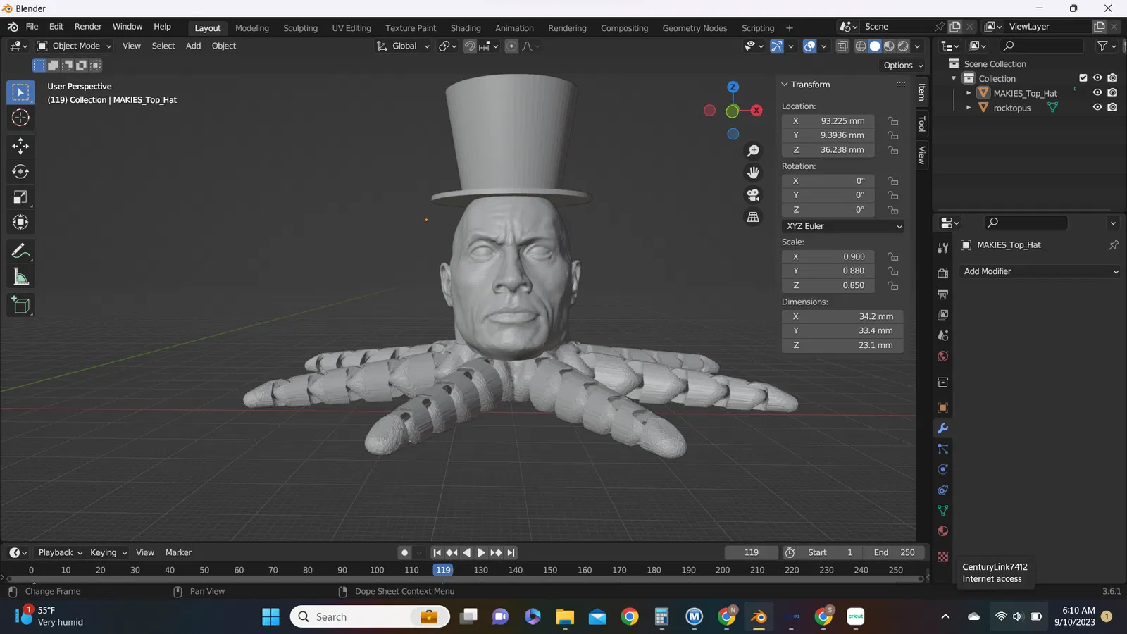 Mô hình 3D The Rocktopus đội mũ (Rocktopus with a top hat) độc lạ
