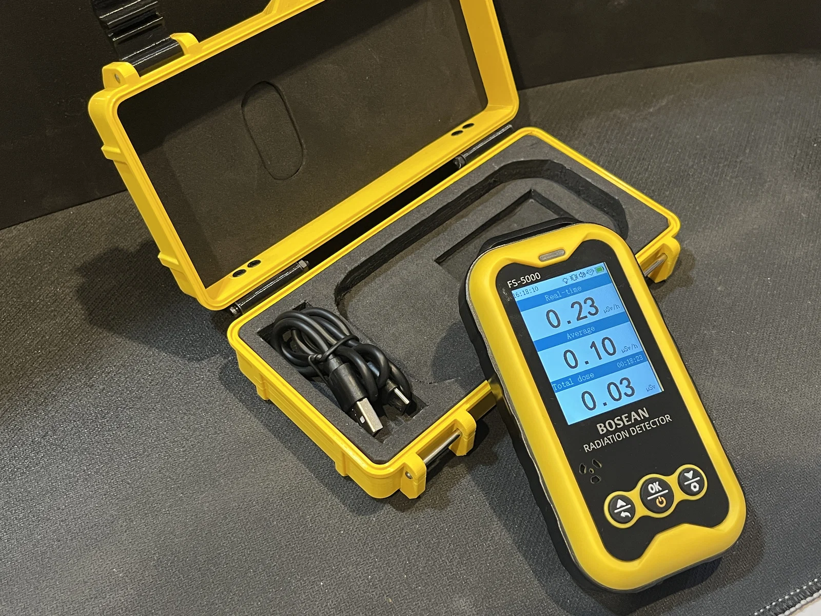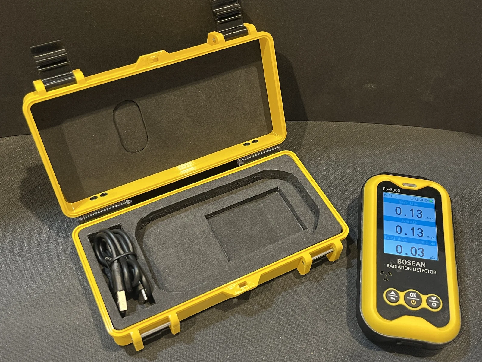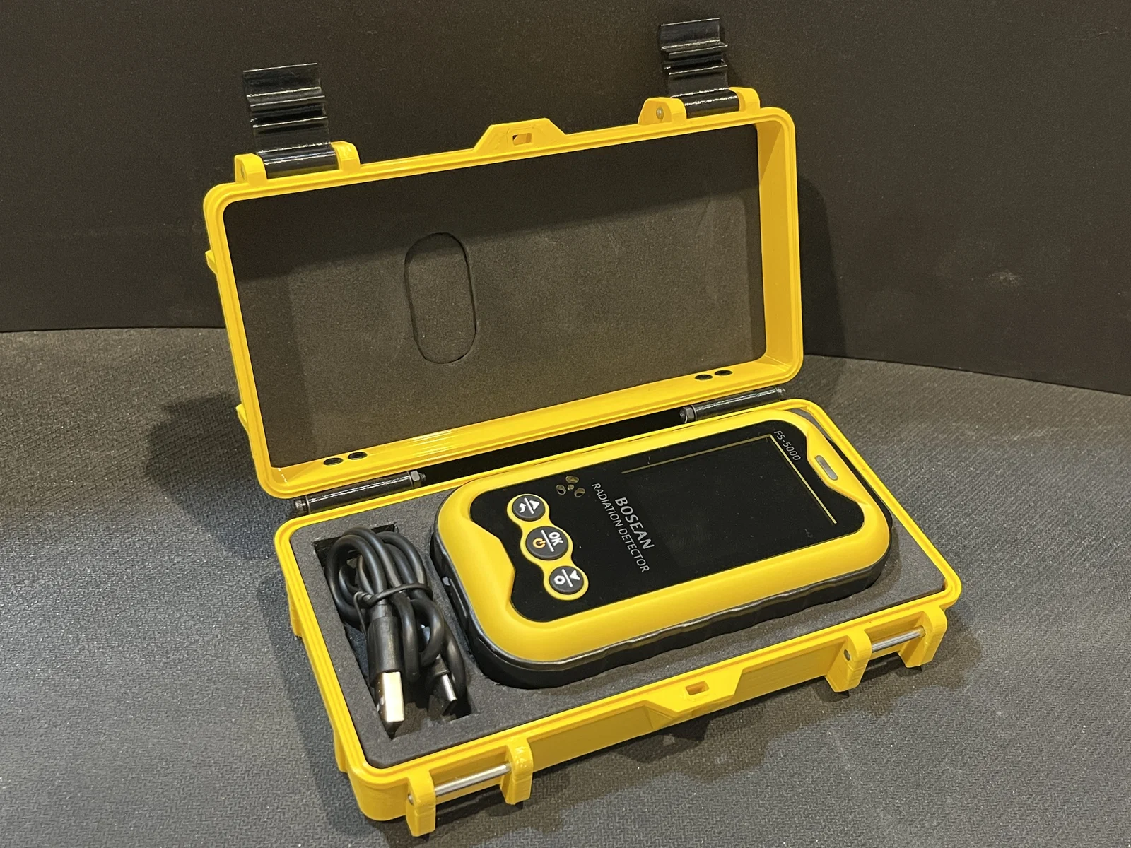 Hộp đựng siêu bền được thiết kế riêng cho máy đo bức xạ Bosean FS-5000. Thiết kế chắc chắn, có kèm hướng dẫn cắt xốp lót và ron chống nước để bảo vệ thiết bị tối đa trong mọi điều kiện.