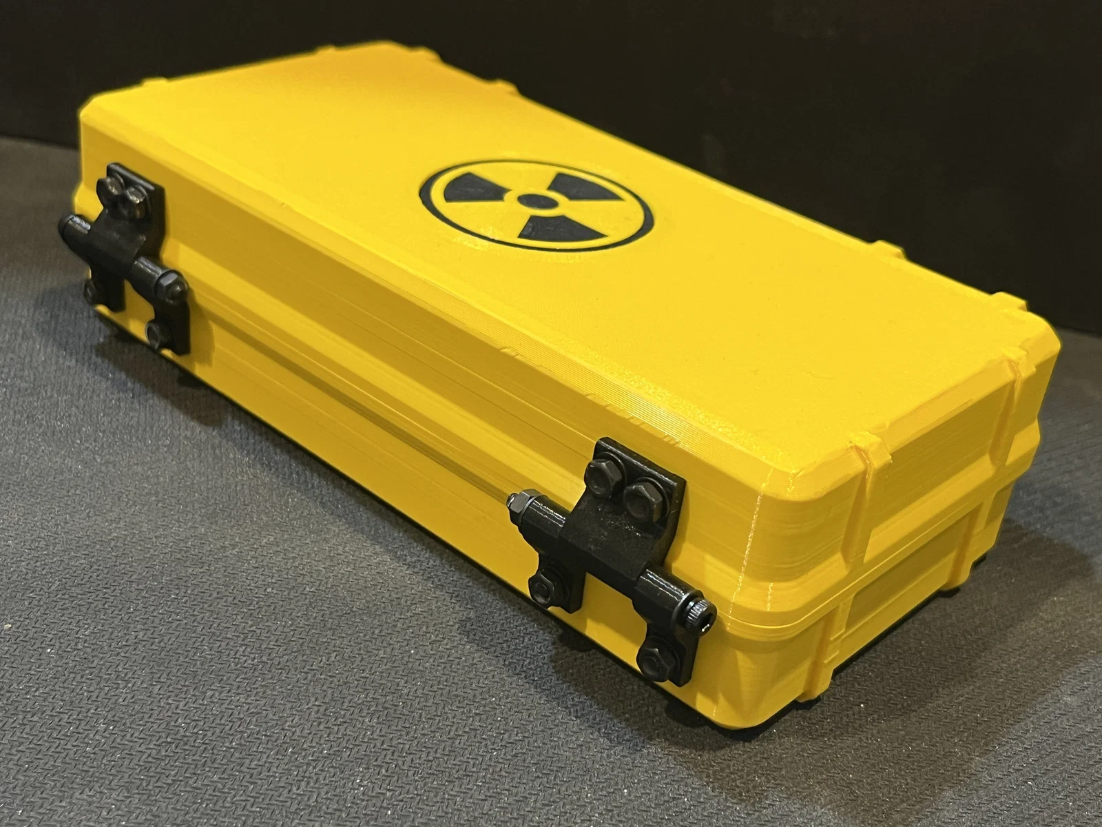 Đây là phiên bản hộp đựng của mình, được tùy chỉnh để vừa khít với máy đo phóng xạ Bosean FS-5000. Vật liệu cần dùng: 8 vít M3x8 đầu bằng. 6 vít lục giác M3x35 hoặc thanh kim loại 3mm. Mút xốp EVA với độ dày 2mm, 5mm, 10mm. Mình đã có kèm file mẫu để bạn cắt theo. Ron silicon 1.5mm tại đây. Biểu tượng bức xạ được in riêng rồi dán lên hộp. Mình sử dụng nhựa Prusament PETG màu vàng Mango, lên màu rất đẹp và phù hợp với thiết bị.