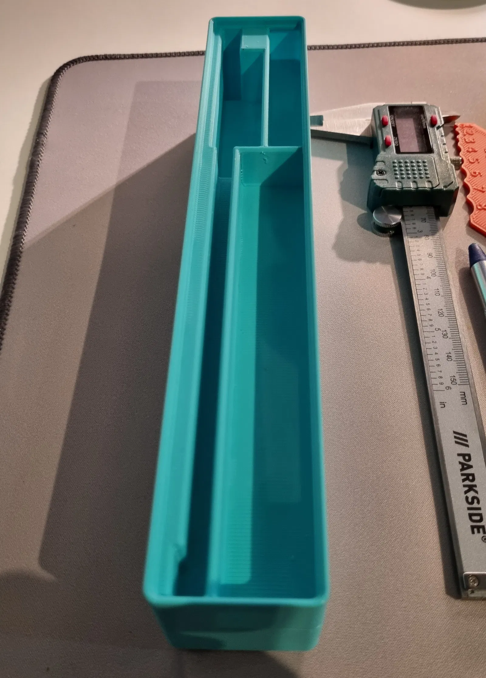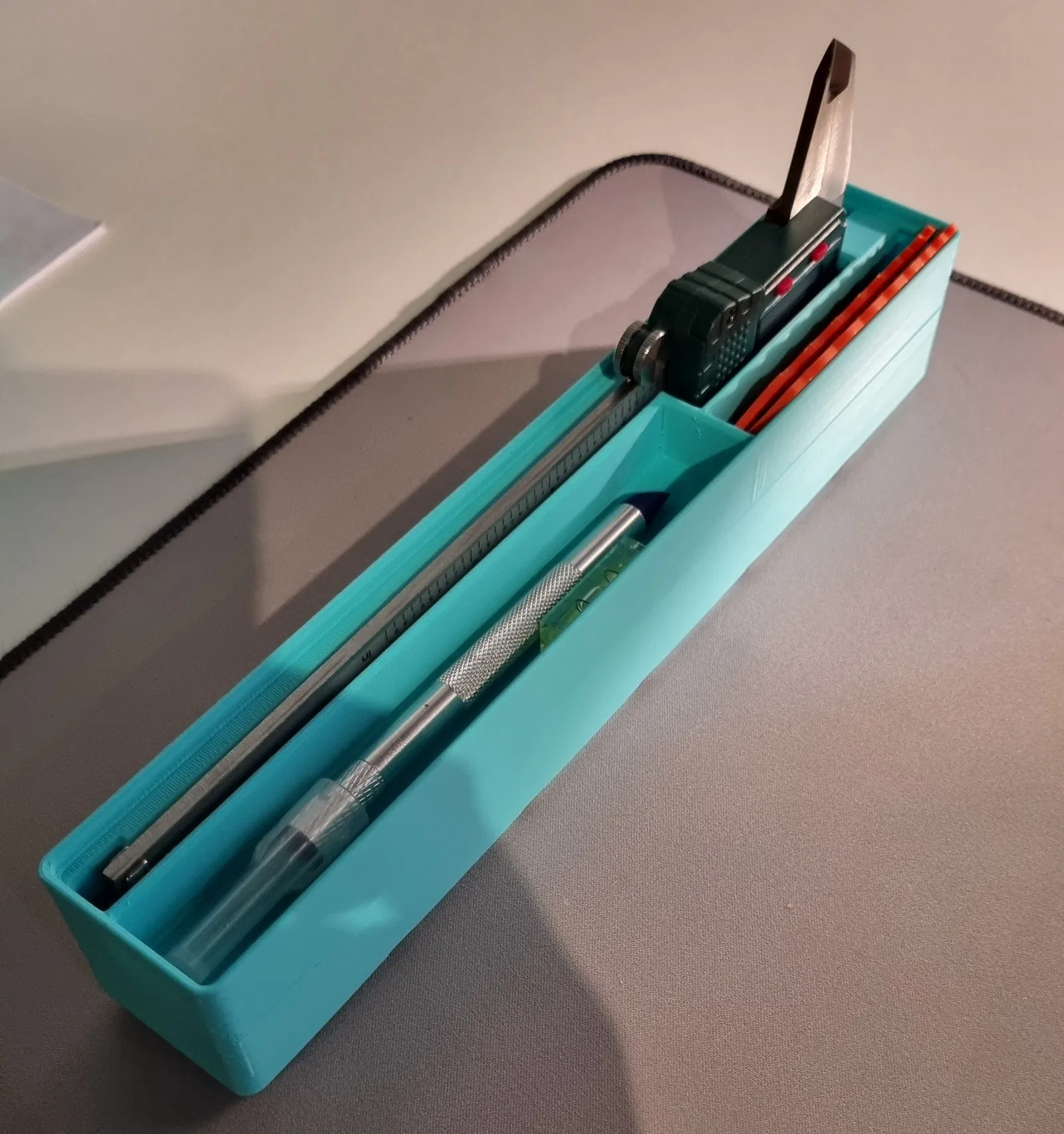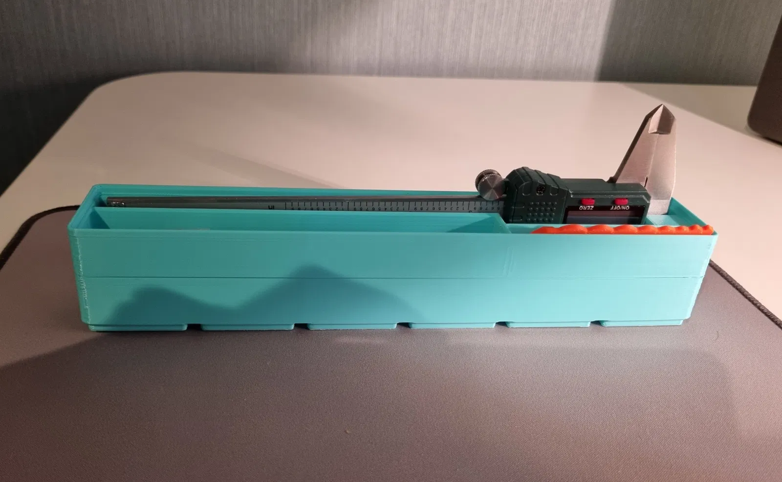 Không chỉ dừng lại ở việc bảo quản thước kẹp, mẫu thiết kế này còn cực kỳ đa năng khi tận dụng tối đa diện tích dư thừa bên trong khay. Nhà thiết kế đã khéo léo chia thêm các ngăn nhỏ phụ, cho phép bạn tận dụng khoảng trống để cất giữ thêm các linh kiện nhỏ, dụng cụ đo khác hoặc phụ kiện 3D printing khác mà không làm tốn thêm diện tích bàn làm việc. Đây quả là sự lựa chọn hoàn hảo cho hệ thống lưu trữ theo chuẩn Gridfinity mà mọi xưởng chế tạo tại gia nên sở hữu.