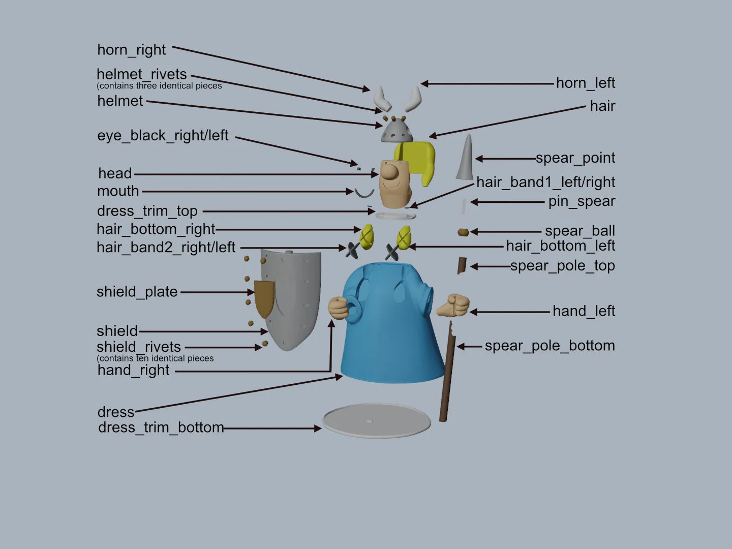 Xám đậm: (Paramount3D PLA - Battleship Gray) shield, helmet, spear_point...