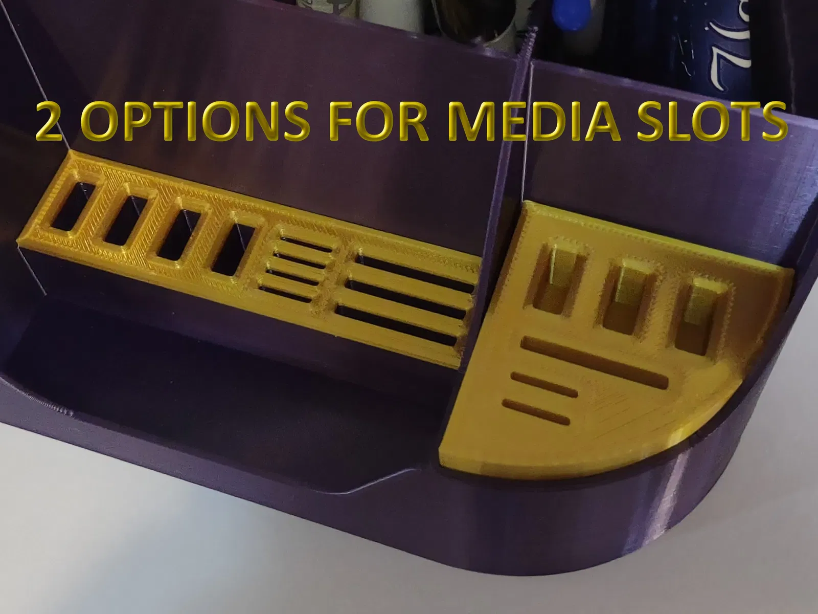 Phần thân chính có hai phiên bản: có hoặc không có khe cắm thiết bị. Đi kèm là nắp đậy khe cắm và các ngăn nhỏ tùy chỉnh.