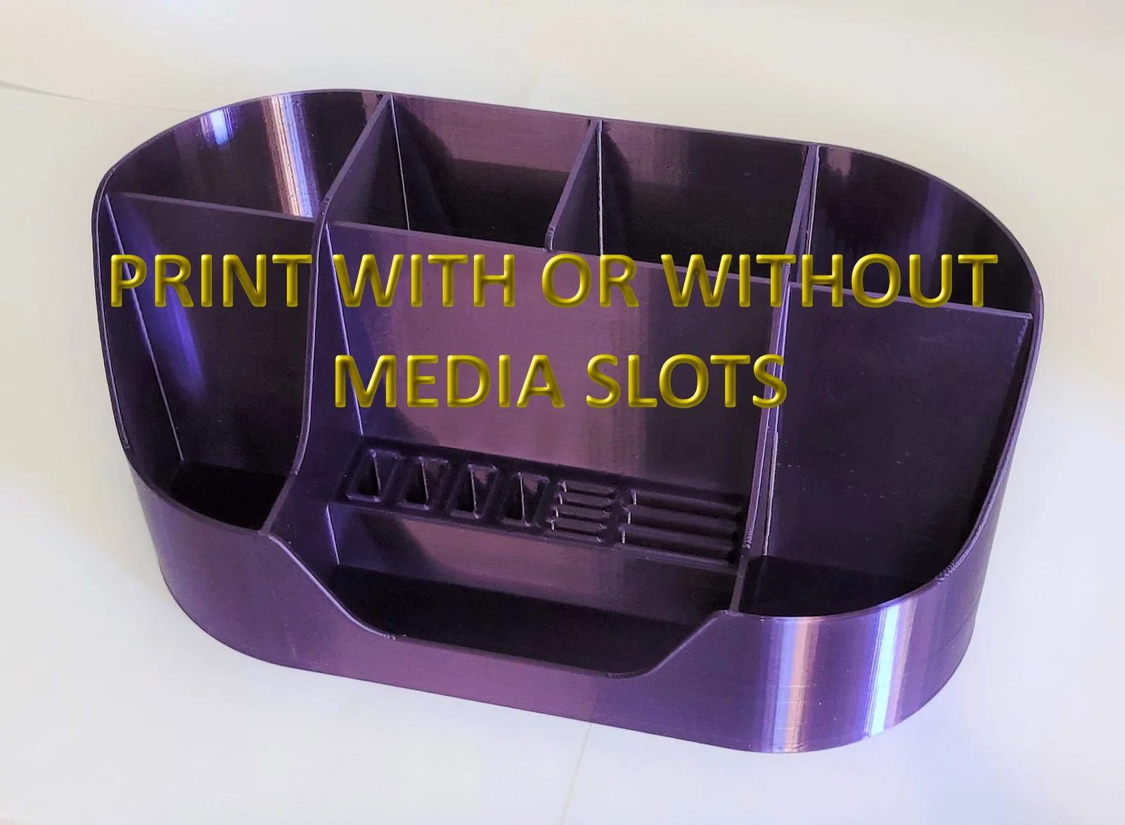 Khay đựng đồ để bàn tiện lợi với các khe cắm thiết bị và ngăn chứa tùy chỉnh. Thiết kế tối ưu cho việc in 3D, không cần support, giúp bạn sắp xếp bàn làm việc gọn gàng và ngăn nắp hơn.