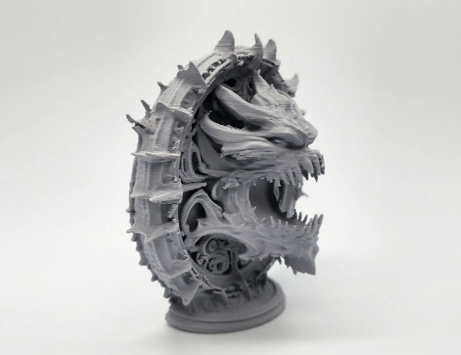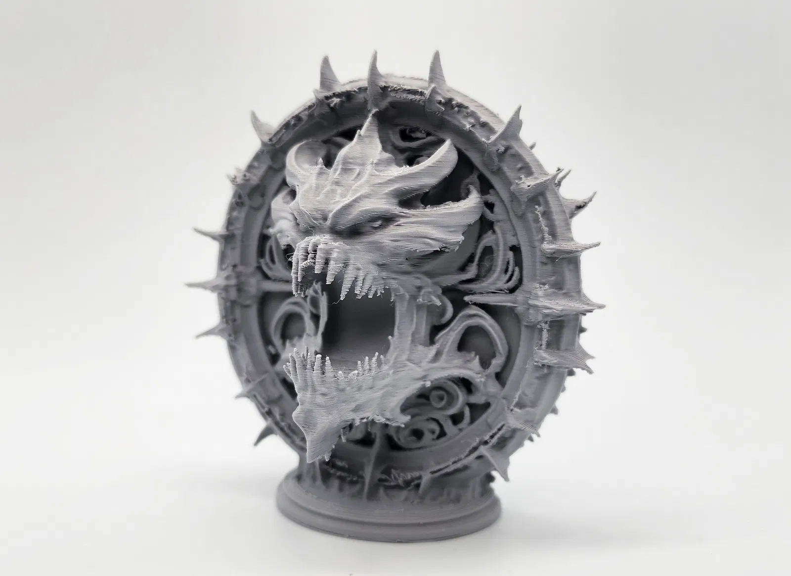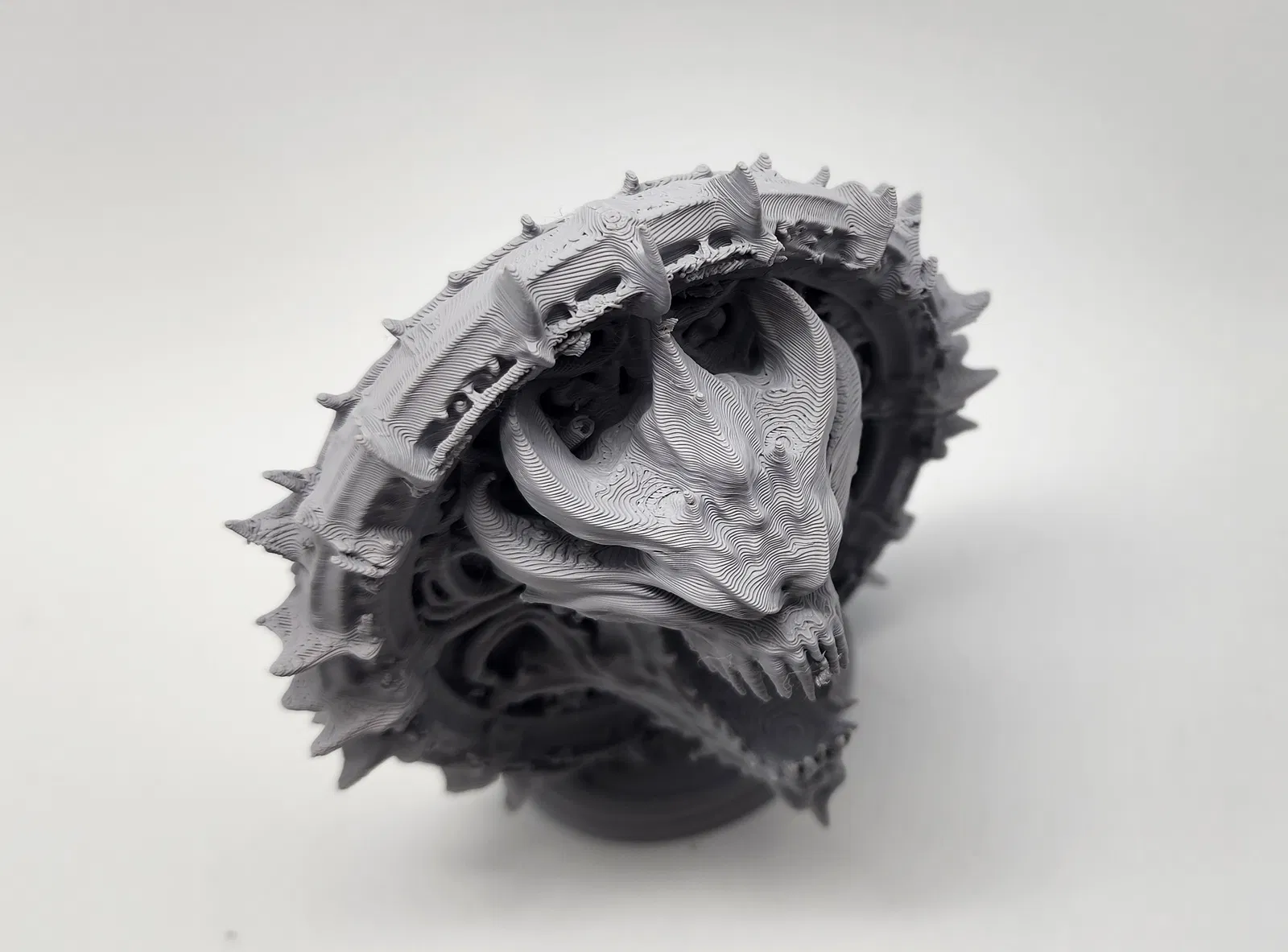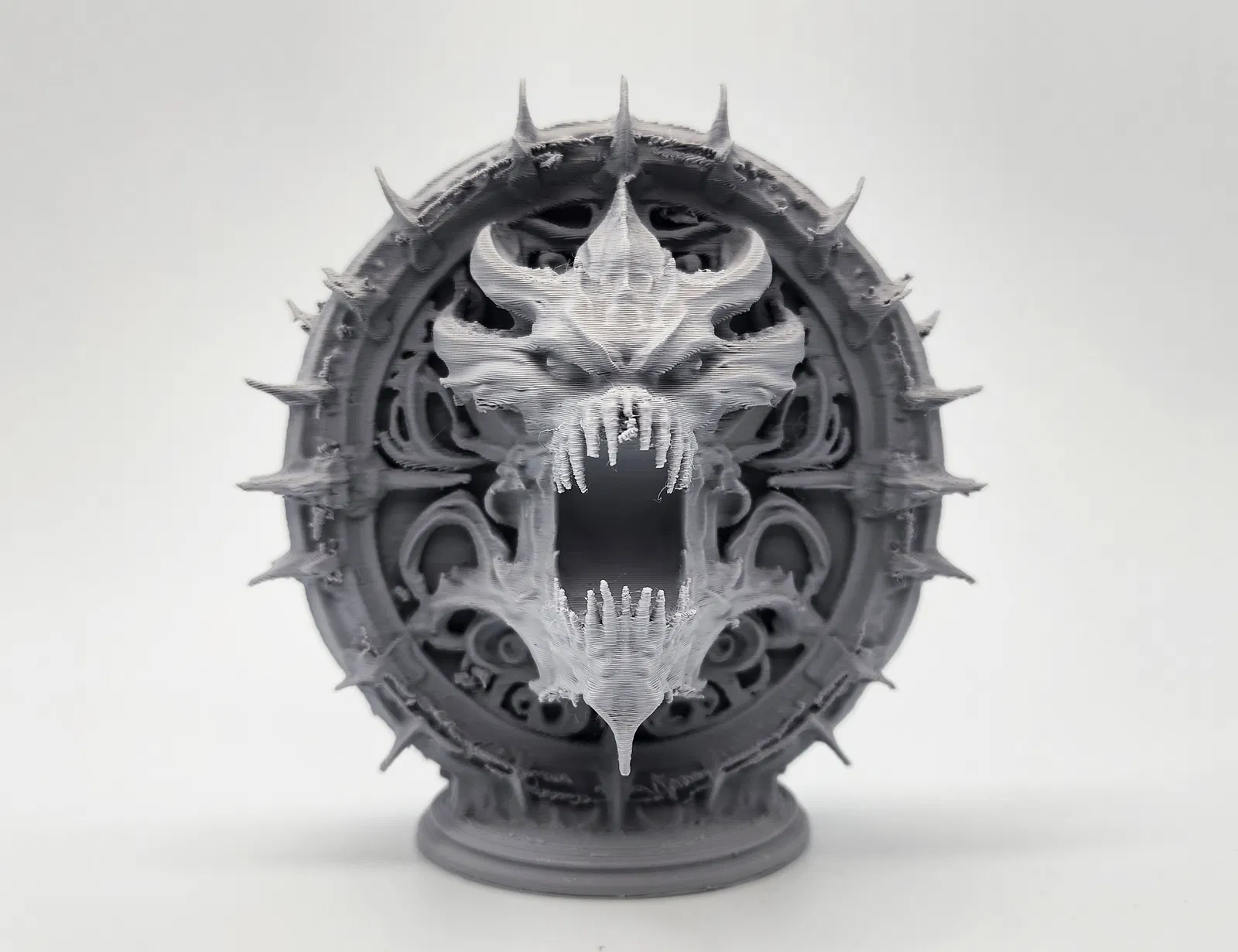 Mẫu cổng đứng ấn tượng với hình ảnh đầu quỷ nhe nanh đang bước ra từ bên trong. Bạn nên cân nhắc in phóng to tỉ lệ để mô hình hiện lên đầy đủ và sắc nét các chi tiết nhỏ nhất. Phù hợp cho các ván game tabletop hoặc trang trí bàn làm việc.