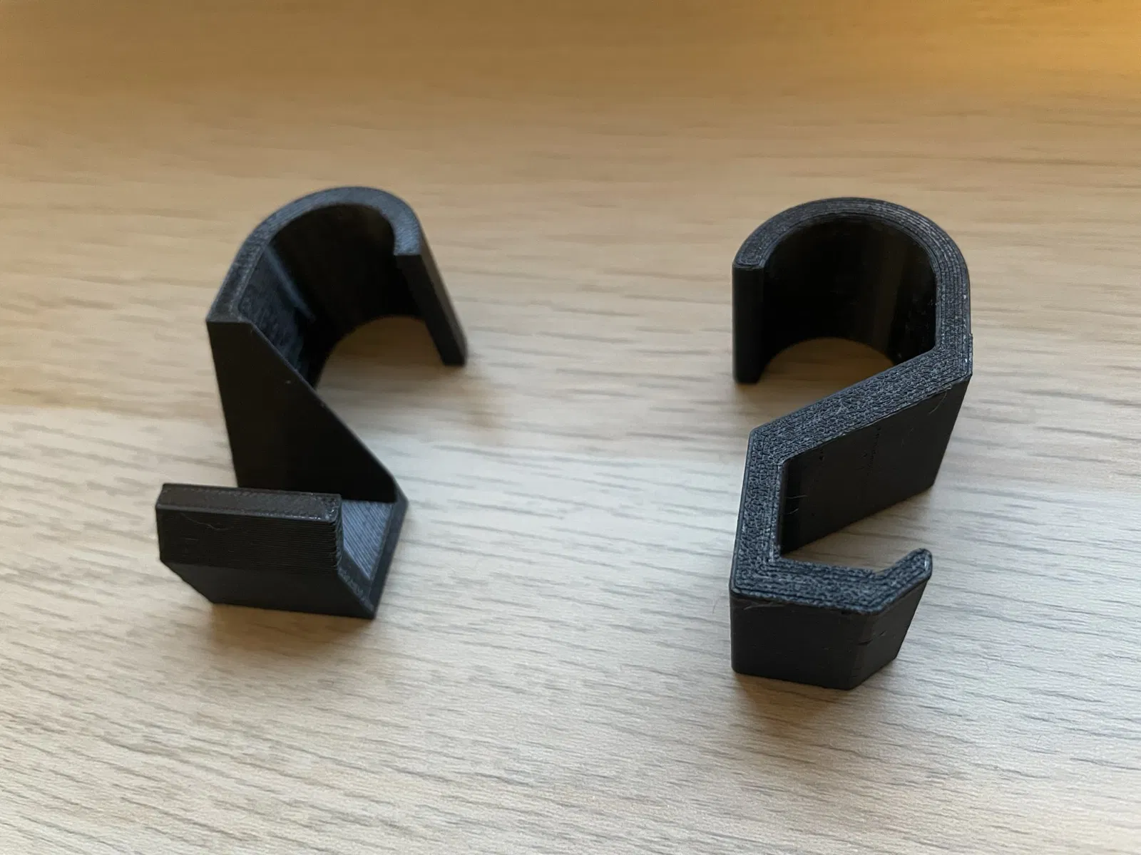 Mình thiết kế mấy cái móc này để trọng lượng của vật treo vào sẽ nằm ngay tâm, giúp móc không bị xoay qua lại. Mình đã in thử bằng cả PLA và PETG với độ đặc (infill) 40%, thực sự là quá dư so với tải trọng mà mình đang sử dụng.