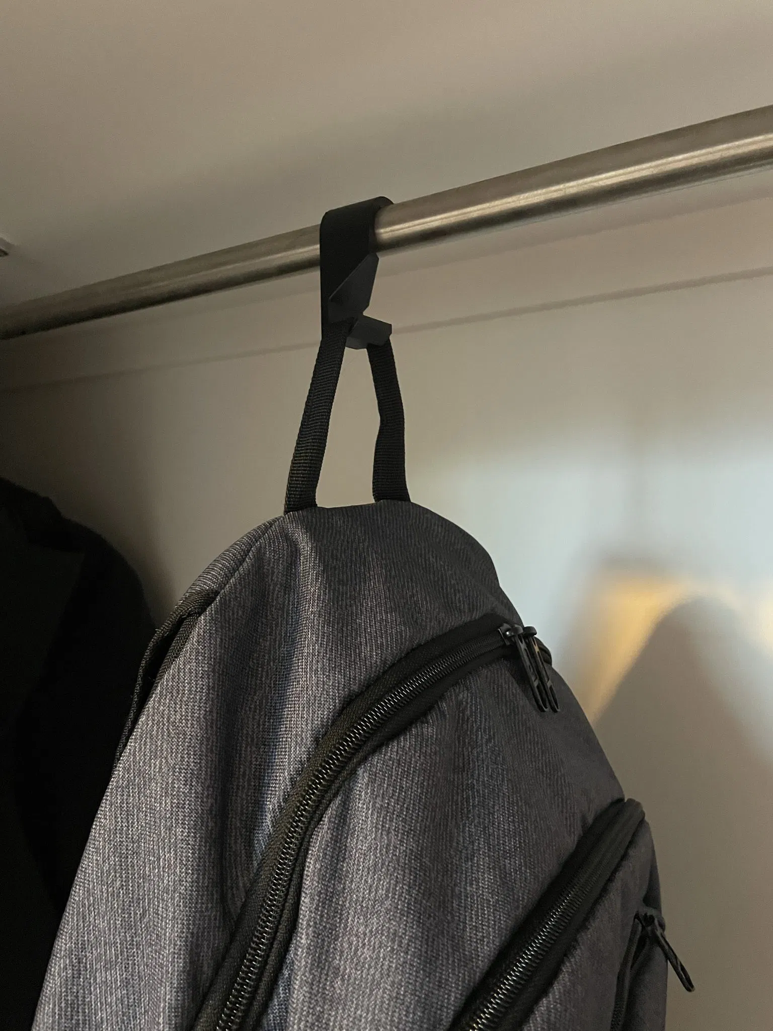 Đây là mẫu móc treo được thiết kế để treo lên các thanh treo quần áo có đường kính 20mm, cực kỳ tiện lợi để bạn treo ba lô hoặc các vật dụng cá nhân một cách chắc chắn và cân bằng.