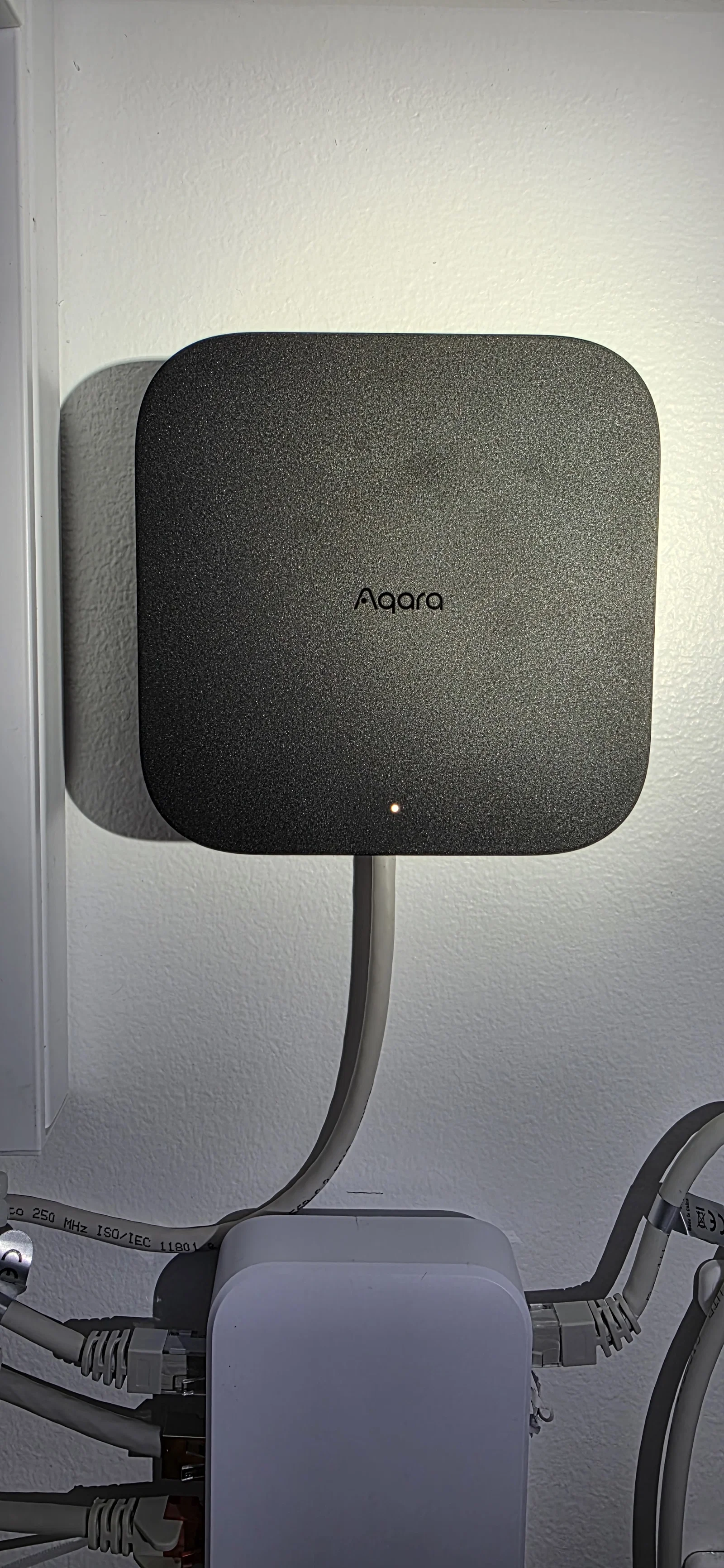 Miếng đệm này giúp bạn treo Aqara M3 Hub lên tường mà vẫn giữ được logo nằm đúng chiều, đồng thời tạo khoảng trống để đi dây cáp RJ45 xuống dưới một cách gọn gàng và thẩm mỹ.