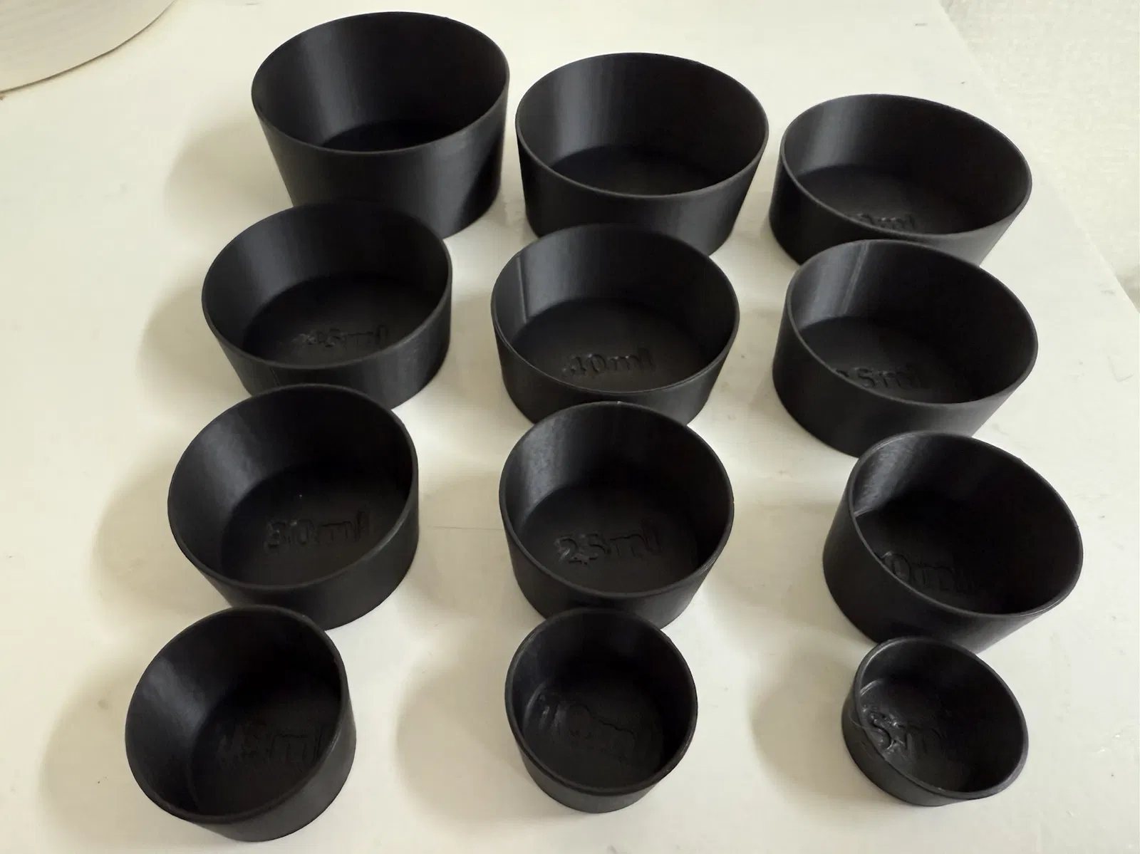 Lưu ý: Độ chính xác của dung tích có thể thay đổi nhẹ tùy thuộc vào máy in và vật liệu. Vui lòng kiểm tra kỹ nếu cần độ chính xác cao. Các loại cốc này được thiết kế để đổ đầy tới miệng cho đơn giản.