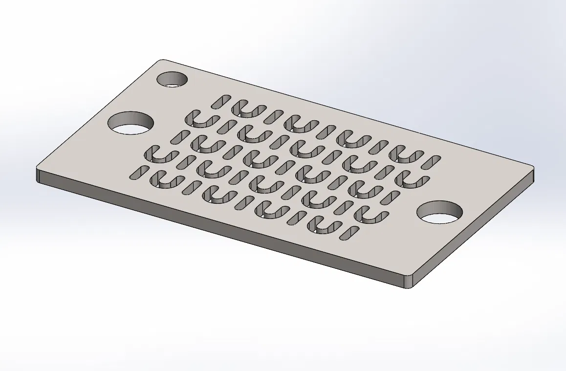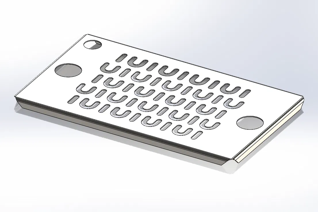 Kim loại tấm: Thiết kế dành cho thép không gỉ 304 hoặc 430, độ dày 0.6 mm, bán kính uốn trong 1.2 mm (kích thước khung bao ngoài 169x99 mm). Nhôm đã được kiểm tra và không phù hợp. Hầu hết các loại máy chấn hiện nay không thể thực hiện các nếp uốn này, tốt nhất là bạn nên dùng máy gấp tôn thủ công.