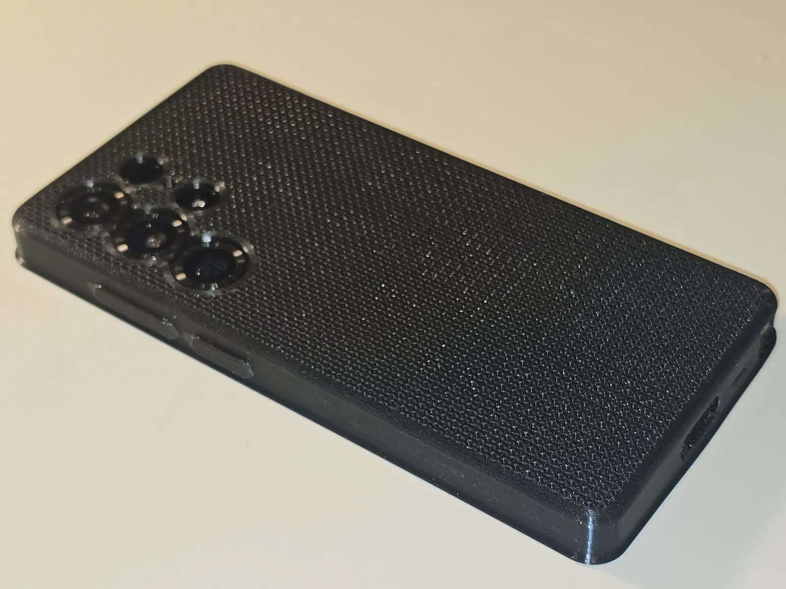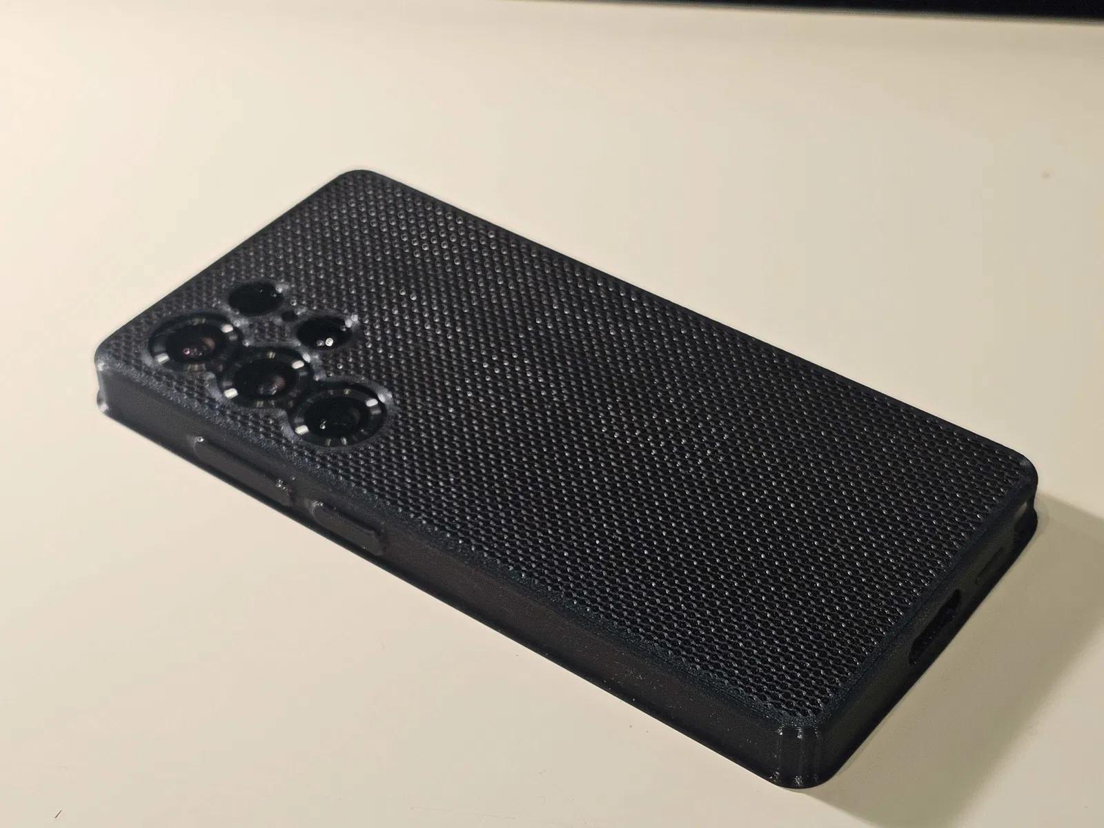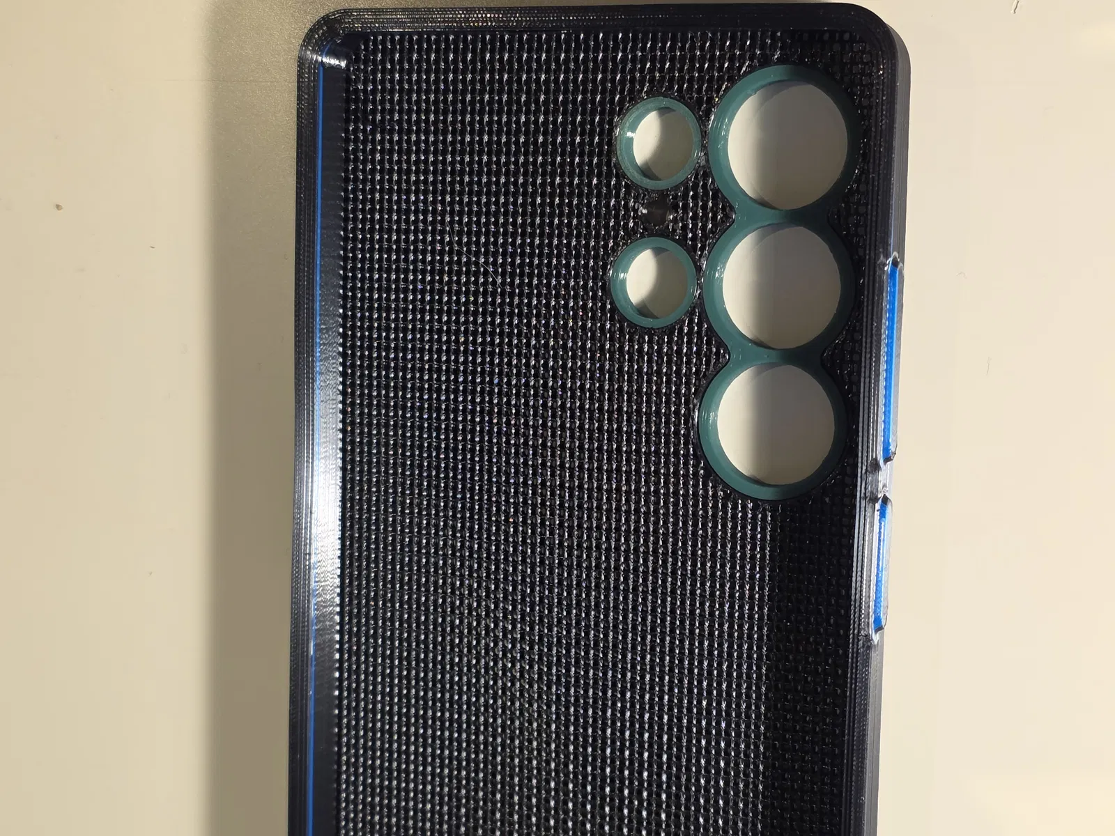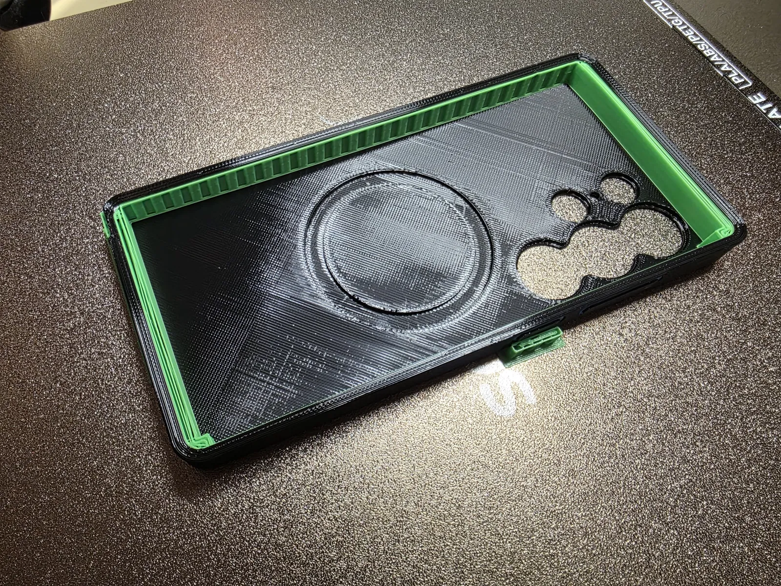 Ốp lưng Samsung Galaxy S25 Ultra bằng TPU kèm vòng bảo vệ camera tùy chọn. Mẫu này đã được cập nhật với phần viền bo tròn hơn một chút và bổ sung vòng nam châm để dùng với sạc MagSafe. Phần ốp camera có các hốc nhỏ để giữ chặt vào ốp TPU mà không cần dùng keo, độ bám rất ổn. Bạn có thể in bằng nhựa PLA hoặc PETG đều được nhé.