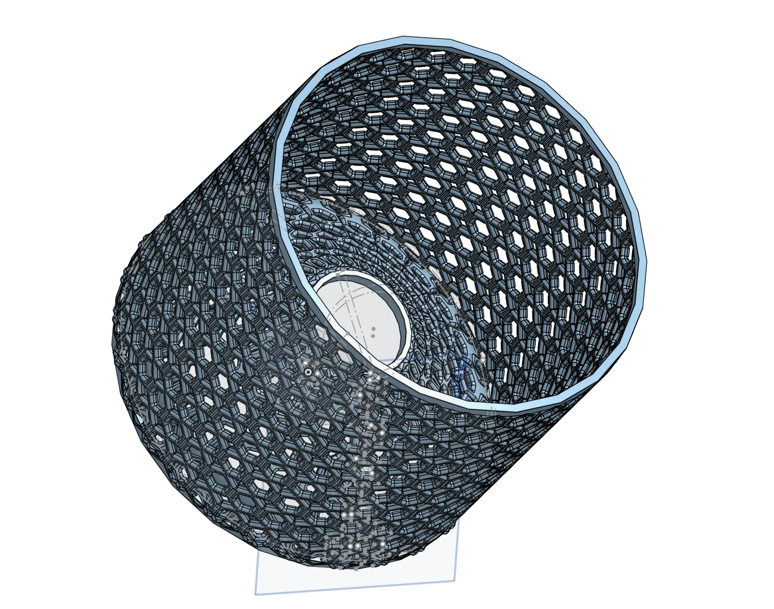 Đây là một bên của cái bẫy cá lòng tong (minnow trap). Mình khuyên các bạn nên dùng bản v2 vì nó có độ phân giải cao hơn và ít điểm đỉnh hơn nhờ vào các cạnh được vát (chamfered) thay vì bo tròn (filleted). Cách sử dụng: 1. In 2 mảnh của bẫy (hoặc một mặt và một nắp). 2. Kết nối hai mặt của bẫy lại với nhau bằng dây hoặc dây rút nhựa. 3. Cho mồi (thức ăn cho chó, bánh mì, thịt gà, v.v.) vào bên trong bẫy thông qua cái lỗ lớn nối với phễu. 4. Đặt bẫy xuống nước (nước chảy nhẹ là tốt nhất, nhưng nước tĩnh cũng được). 5. Để bẫy một lúc, thời gian càng lâu thì khả năng bắt được nhiều cá lòng tong càng cao (đôi khi còn bắt được cả tôm). 6. Lấy bẫy ra và cho cá vào xô đựng mồi (link dự án này mình sẽ cập nhật sớm). 7. Lặp lại các bước trên. Thông tin khác: Bạn có thể sử dụng bất kỳ loại filament nào, đặc biệt nếu chỉ dùng trong môi trường nước. Màu sắc sáng hoặc phản quang có thể giúp thu hút cá hơn, nhưng không bắt buộc. Không đảm bảo lần nào cũng sẽ bắt được cá. Bạn có thể điều chỉnh kích thước mô hình tùy theo kích cỡ con cá muốn bắt. Kích thước mô hình gốc là 143mm, đường kính lỗ vào là 36mm, và các lỗ lục giác là 7mm.