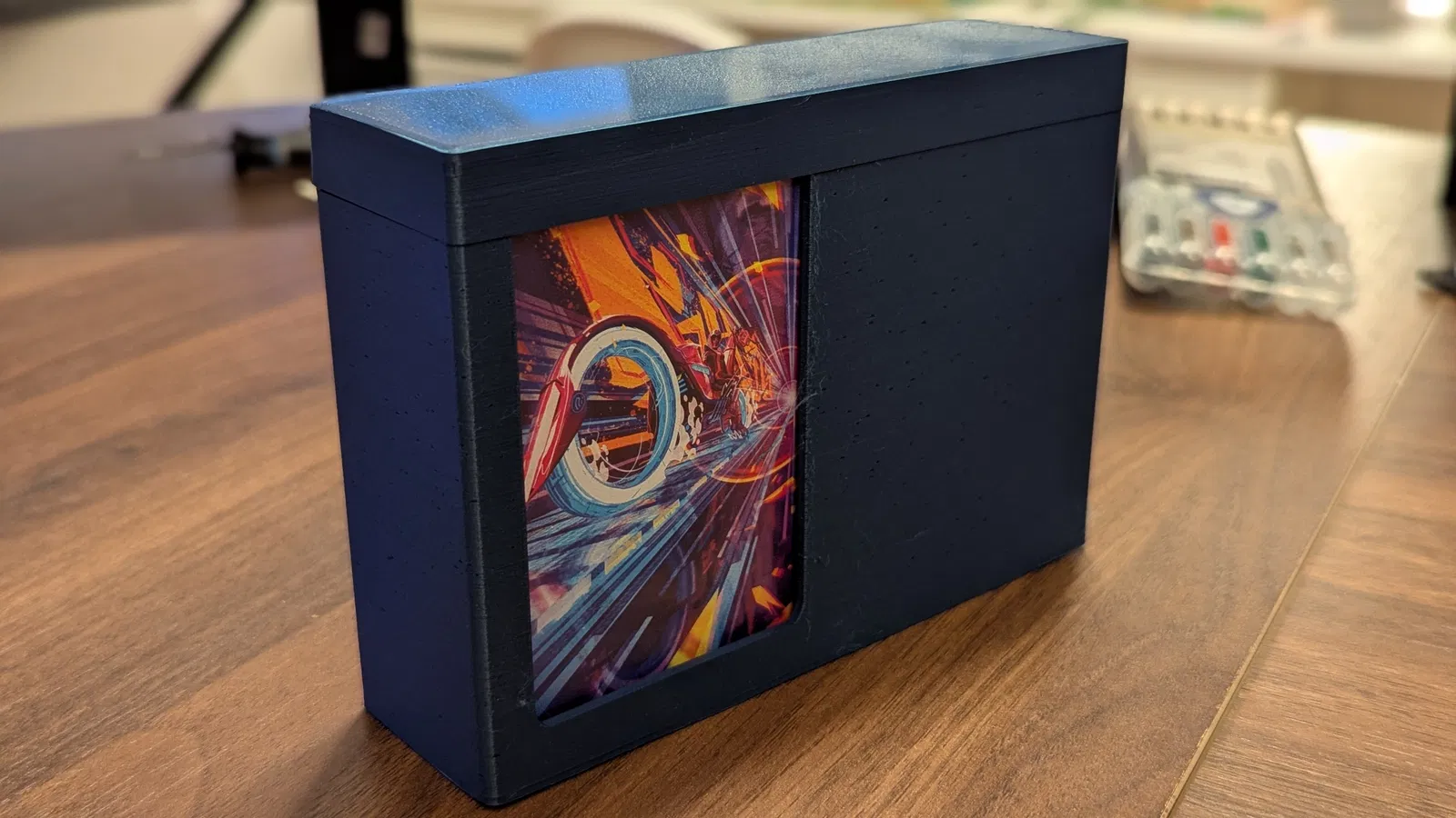 Mẫu hộp đựng bài MTG Commander thiết kế siêu mỏng, tối ưu cho việc mang theo bên mình. Hộp có không gian chứa 1 bộ bài bọc sleeve kèm ngăn đựng token, hỗ trợ tùy chọn cửa sổ trang trí art card bắt mắt.