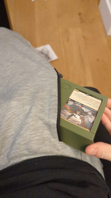 Mình tạo ra mẫu hộp đựng bài (deckbox) Slim hai tầng này vì thấy các loại hộp đơn thông thường quá cồng kềnh, không vừa túi xách của mình (thậm chí mẫu này còn bỏ vừa cả túi quần lớn). Ngoài ra, mình thấy ít ai để ý đến các tấm thẻ nghệ thuật (art cards) đi kèm trong các gói bài, nên mình nghĩ đây là một cách hay để trang trí cho hộp đựng bài.