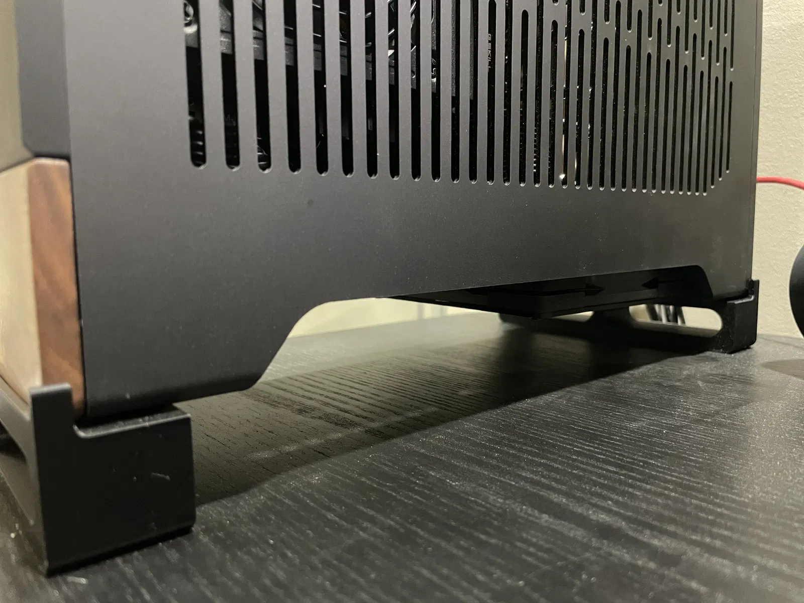 Đây là bộ chân đế (riser) được thiết kế riêng cho vỏ case Fractal Terra. Mình thấy nhiệt độ của máy không được tốt lắm, nên việc gắn thêm quạt ở mặt đáy để lấy gió vào sẽ rất hiệu quả. Mình đã thiết kế bộ chân đế này để nâng case cao lên, tạo khoảng trống cho luồng không khí lưu thông. Hiện tại mình đang lắp một chiếc quạt PC loại mỏng ở dưới đáy và nhiệt độ đã cải thiện đáng kể.