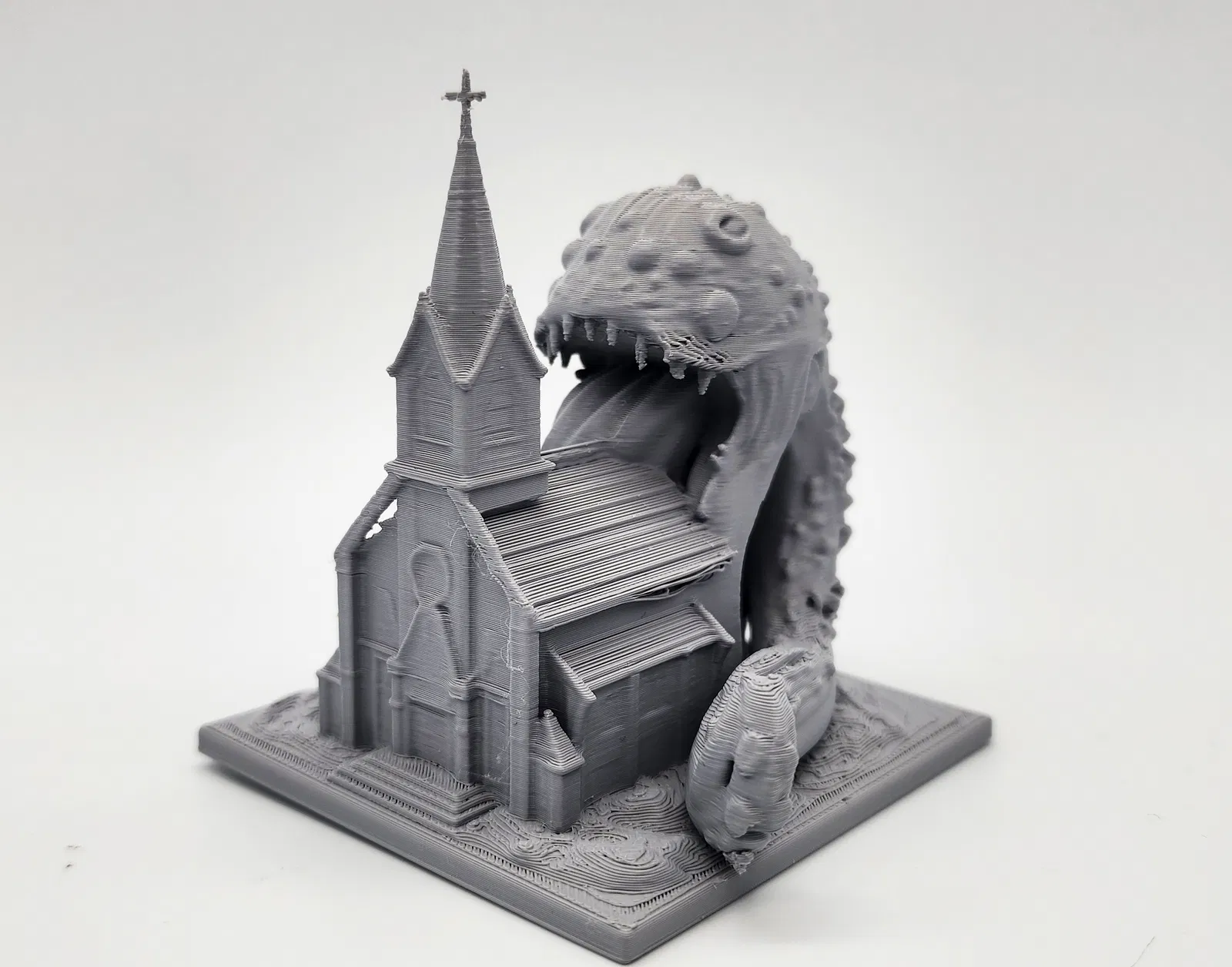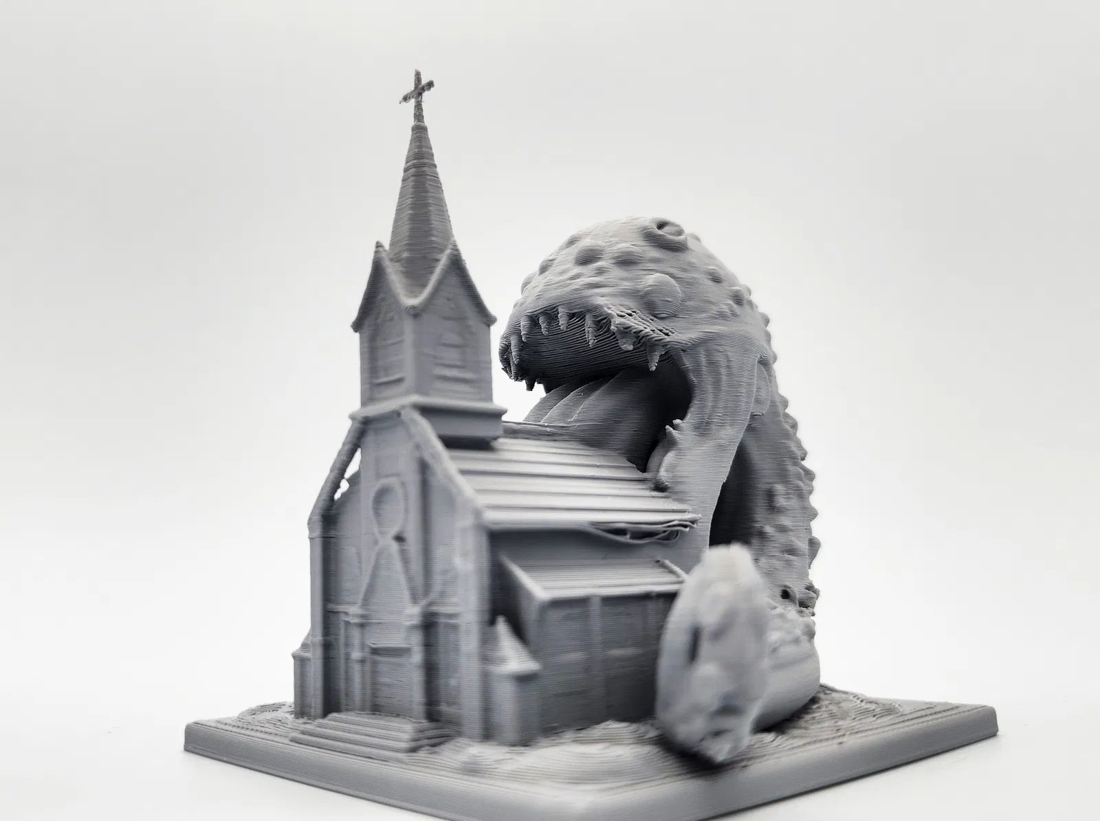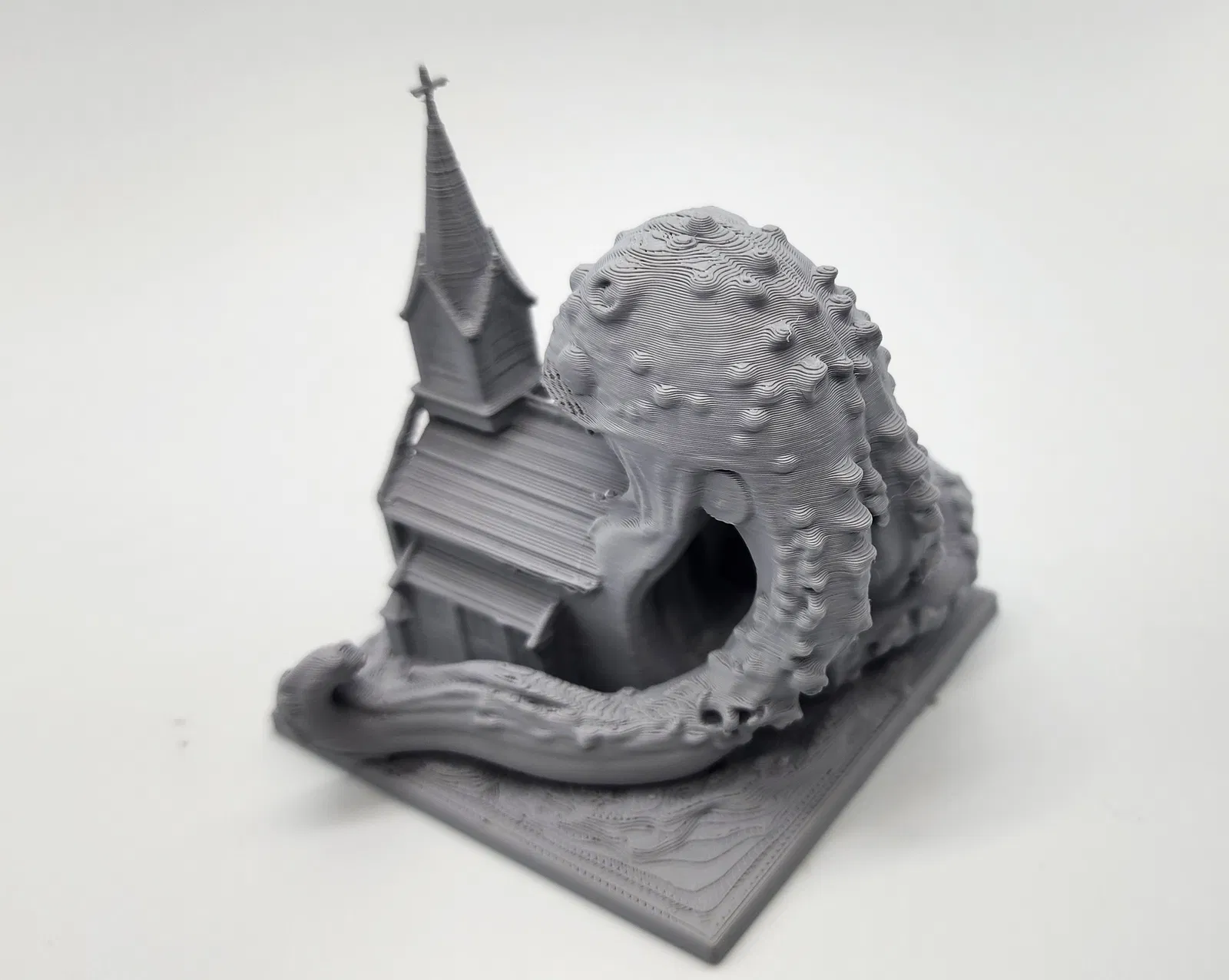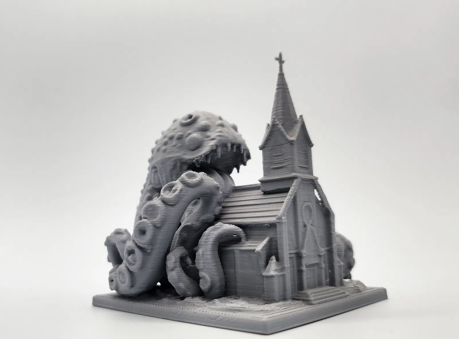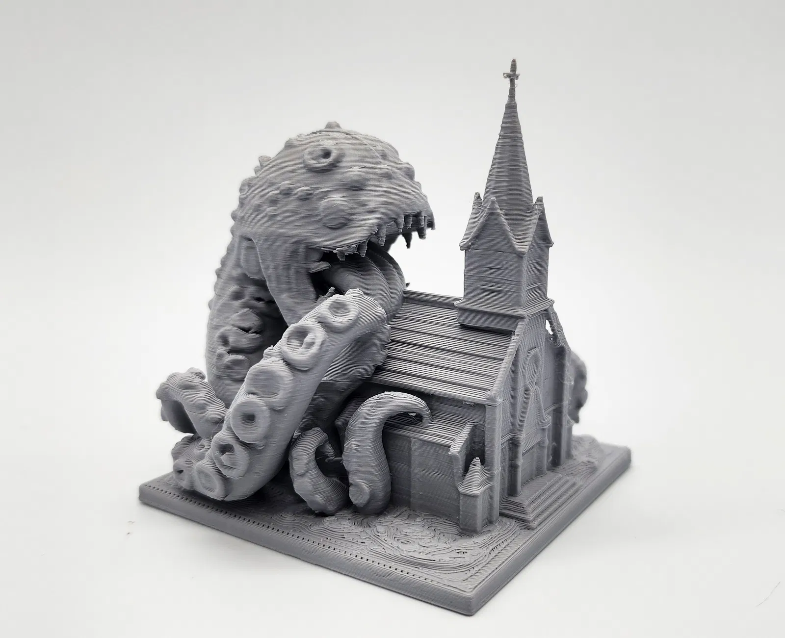 Con quái vật xúc tu đầy giận dữ này đang nuốt chửng cả một ngôi nhà thờ. Một mô hình boss cực chất cho các trận D&D hoặc game tabletop của bạn. Dễ dàng in với hỗ trợ Tree Supports, sẵn sàng để sơn phết và tạo điểm nhấn cho bản đồ chiến đấu.