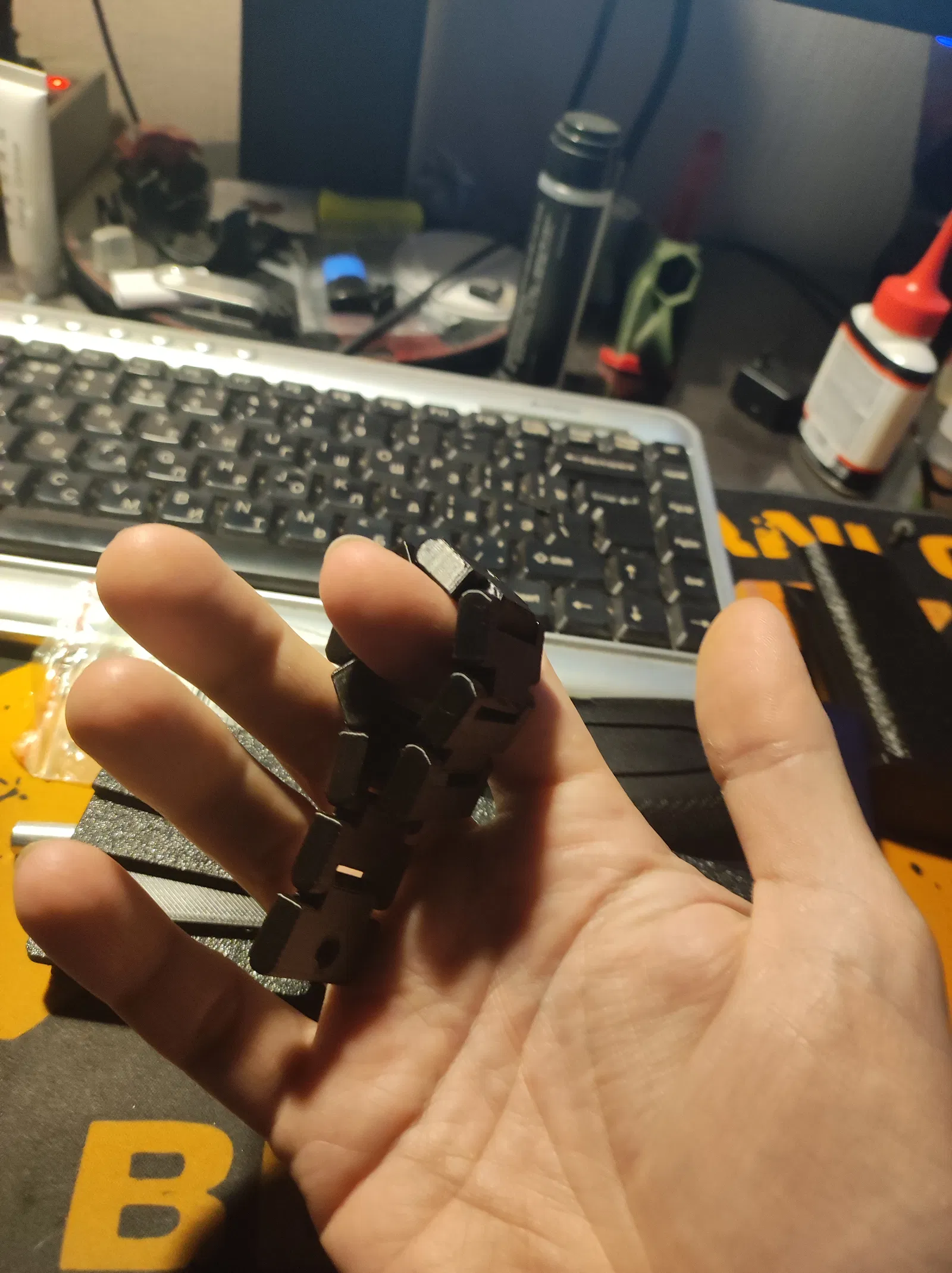 Cập nhật ngày 15.02.2025: Mình vừa thêm bản cải tiến thứ 3, tăng chiều dài mỗi mắt xích thêm 1mm và thay đổi một trong các mắt xích ở đầu. Giờ thì kể cả bạn có bàn tay to cũng có thể xoay chuỗi hạt qua lại giữa các ngón tay một cách dễ dàng.