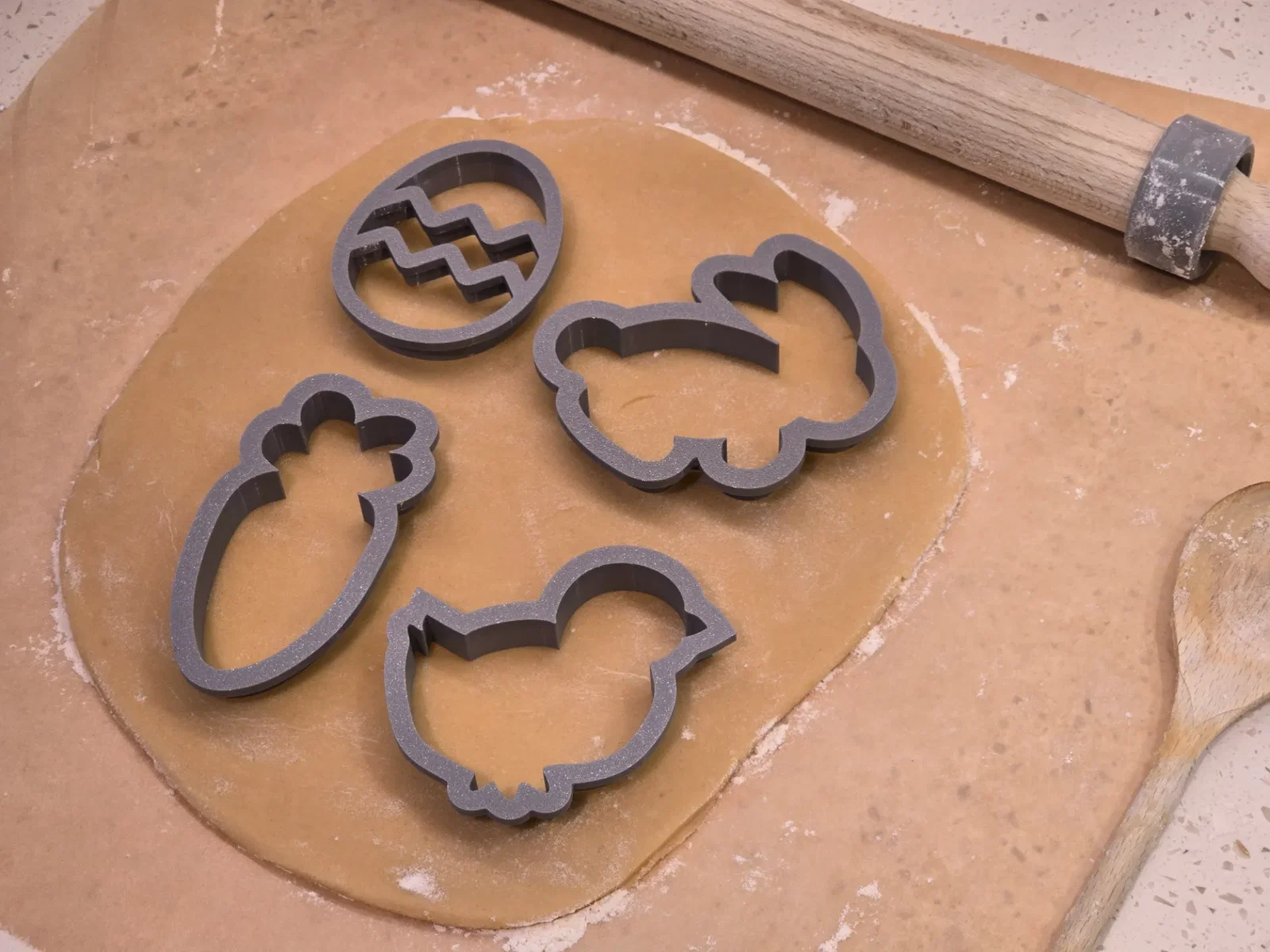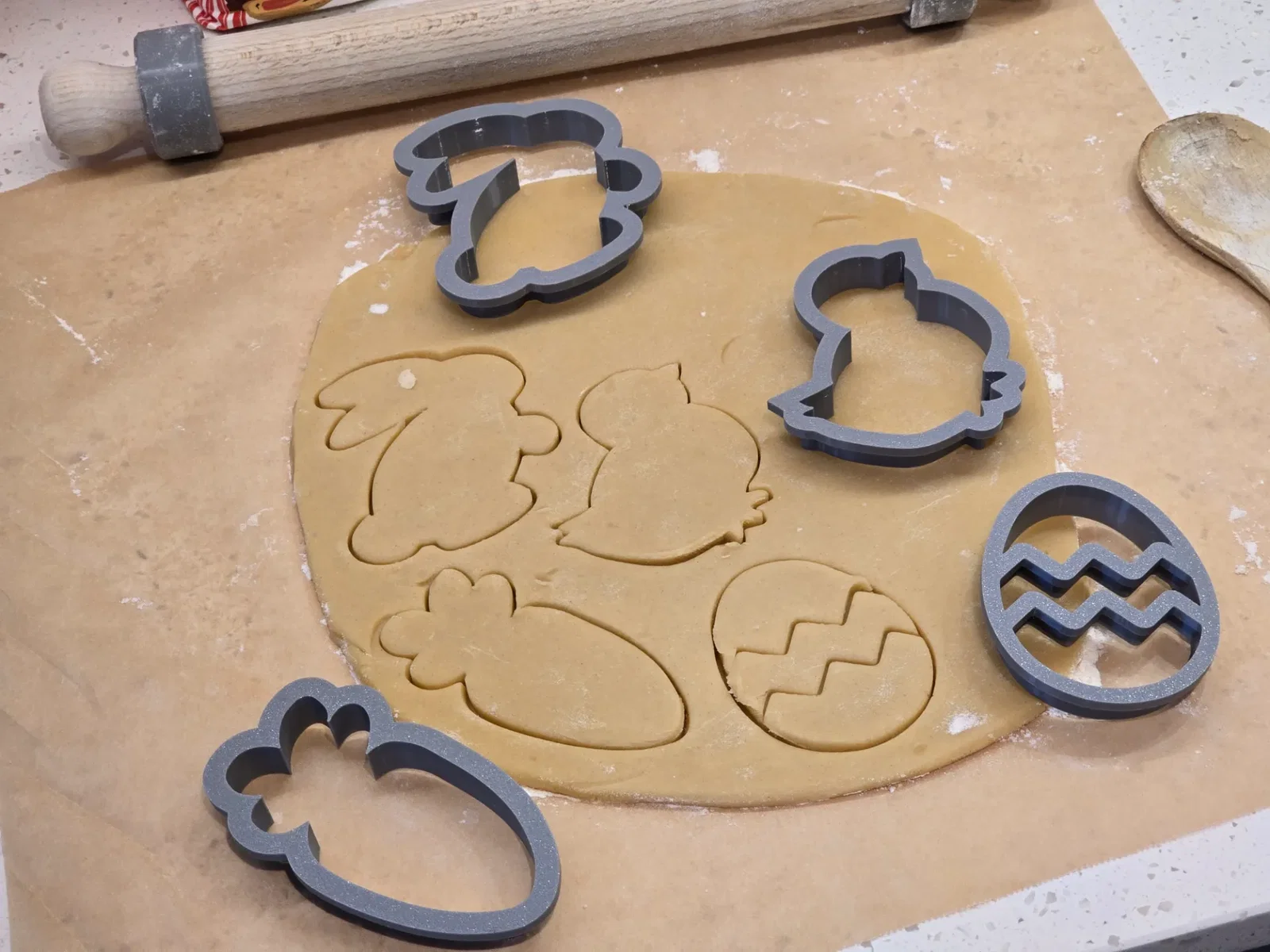 Bạn có thể in khuôn bằng nhựa PLA, PETG hoặc TPU. Riêng chất liệu TPU cứng sẽ cho ra khuôn cắt bánh dẻo, nhìn rất chuyên nghiệp. Tuy nhiên, bạn cứ thoải mái sử dụng bất kỳ loại filament nào an toàn với thực phẩm mà mình đang có sẵn nhé.