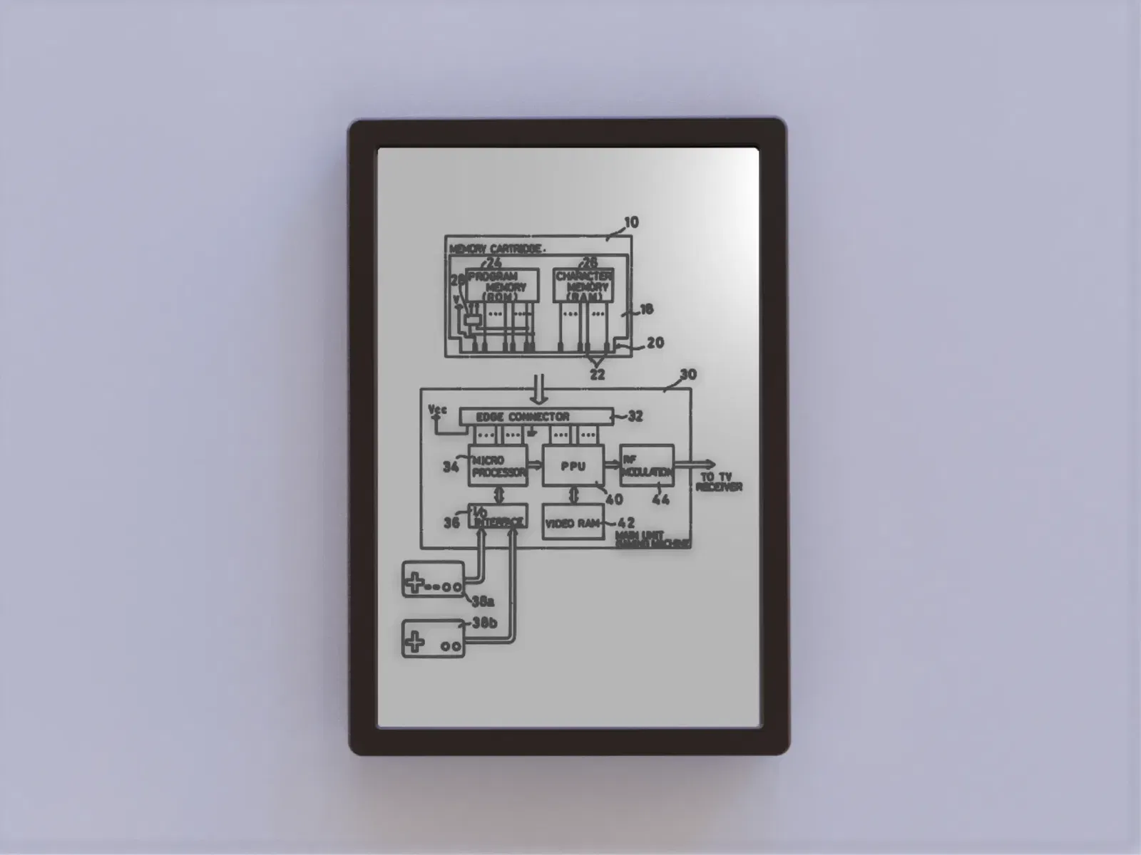 Màn hình nghệ thuật 2D cho một sơ đồ bằng sáng chế cho hộp mực trò chơi hệ thống giải trí Nintendo.