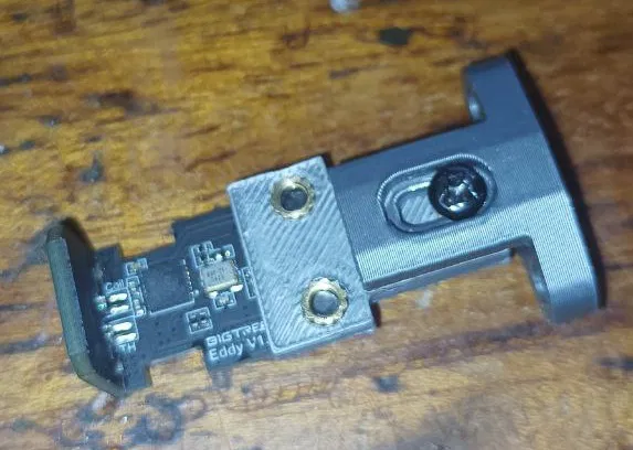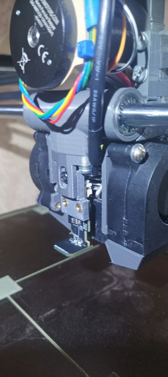 Mình đã tháo vỏ nhựa của cảm biến ra và gắn board mạch lên một đế in mới. Thiết kế này giúp các bạn điều chỉnh được độ cao của cảm biến trong phạm vi cho phép. Trong trường hợp của mình, khoảng cách tới bàn in là 3.2 mm.
