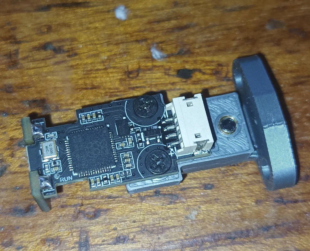 Các bạn sẽ cần ốc M3 dài 3mm và tán nhiệt (press-fit bushings) loại M3 (đường kính ngoài 4.2mm). Lưu ý khi lắp tán nhiệt để gắn board cảm biến, các bạn nên ép chúng từ phía bên hông như trong ảnh. Tốt nhất là phần đồng của tán nhiệt không nên chạm vào board mạch. Dù board đã có lớp phủ bảo vệ (solder mask), nhưng tán nhiệt bằng đồng vẫn có thể làm trầy xước và gây chập mạch. Vì vậy, mình nhấn mạnh rằng tán nhiệt ở phía mặt board cần phải được ngăn cách bởi một lớp nhựa mỏng, hãy xem kỹ trong ảnh nhé.